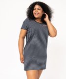 Chemise de nuit à manches courtes avec motifs femme grande taille raye