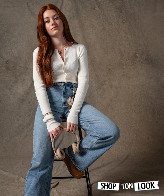 Un gilet blanc près du corps illumine la silhouette et crée un style net et moderne. Associé à un pantalon bleu, l’ensemble gagne en fraîcheur et en contraste. Les chaussures marron ajoutent une touche chaleureuse. Un look épuré, tendance et parfaitement équilibré.