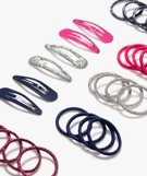 D'adorables pinces et des élastiques pailletés, parfaits pour des coiffures sages ou audacieuses !