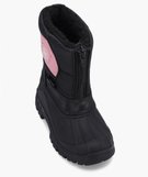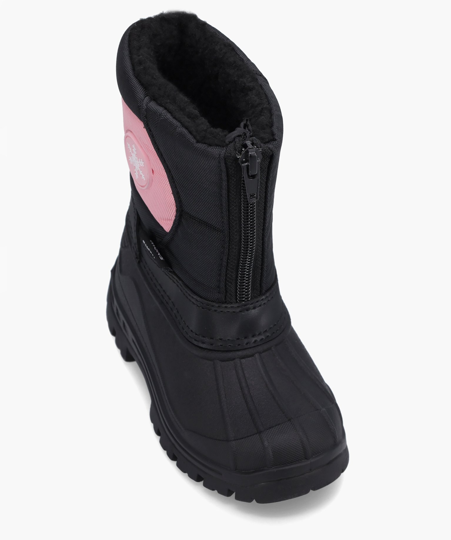 Un incontournable des séjours enneigés : la bottine après-ski. Ce modèle se distingue par sa confection robuste et étanche où toute la partie basse de la tige est renforcée en élastomère imitant la forme sabot. La partie haute de la tige, en textile déperlant bien rembourrée, apporte la souplesse nécessaire à chaque pas. Ces bottes après-ski pour fille sont habillées d’une doublure chaude et moelleuse en textile sherpa. On a vraiment tout pour aller s’amuser dehors sans avoir froid aux pieds ! Fermeture zippée sur le devant.
