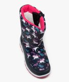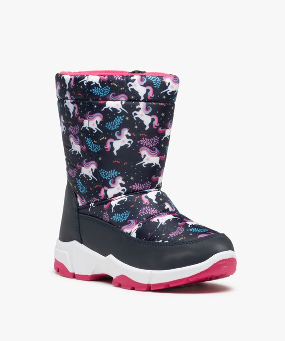 Garder une allure girly en bas des pistes, c’est possible ! Ces bottes après-skis imprimées misent sur de jolies licornes et une semelle colorée pour séduire les petites filles. On retrouve une tige en textile déperlant, rembourrée et doublée de polaire, idéale pour garder le pied au chaud. La semelle épaisse et crantée assure une bonne adhérence sur la plupart des sols, même mouillés ou couverts de neige, et de s’isoler mieux du froid. Des après-skis fille indispensables pour tous les séjours enneigés. Fermeture zippée sur le côté du pied.