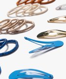 Assortiment d'accessoires à cheveux pinces et élastiques (lot de 26) bleu