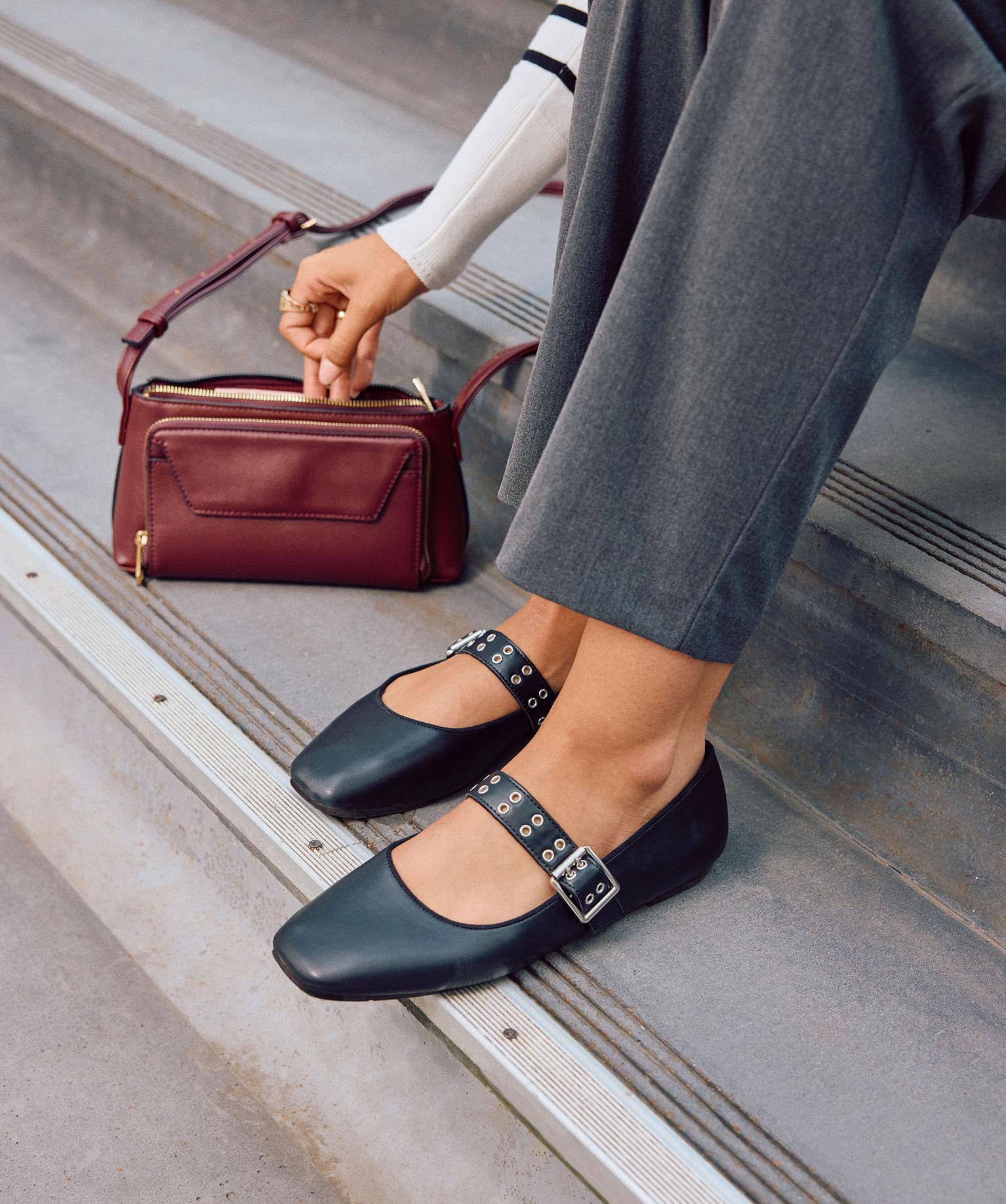 Ces babies femme, aussi appelées Mary-Jane, allient raffinement et modernité ! Elles sont dotées d'une large bride ajustable entièrement recouverte d'œillets métalliques très rock et d'une boucle carrée. Elles affichent également un bout carré original et une ligne sobre aux coutures très discrètes. Leur semelle intérieure ultra-moelleuse garantit un confort optimal. Mention spéciale pour le détail léopard sur la semelle intérieure qui apporte une note audacieuse.