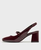 Babies à talon vernis et ouverts sur l'arrière femme bordeaux