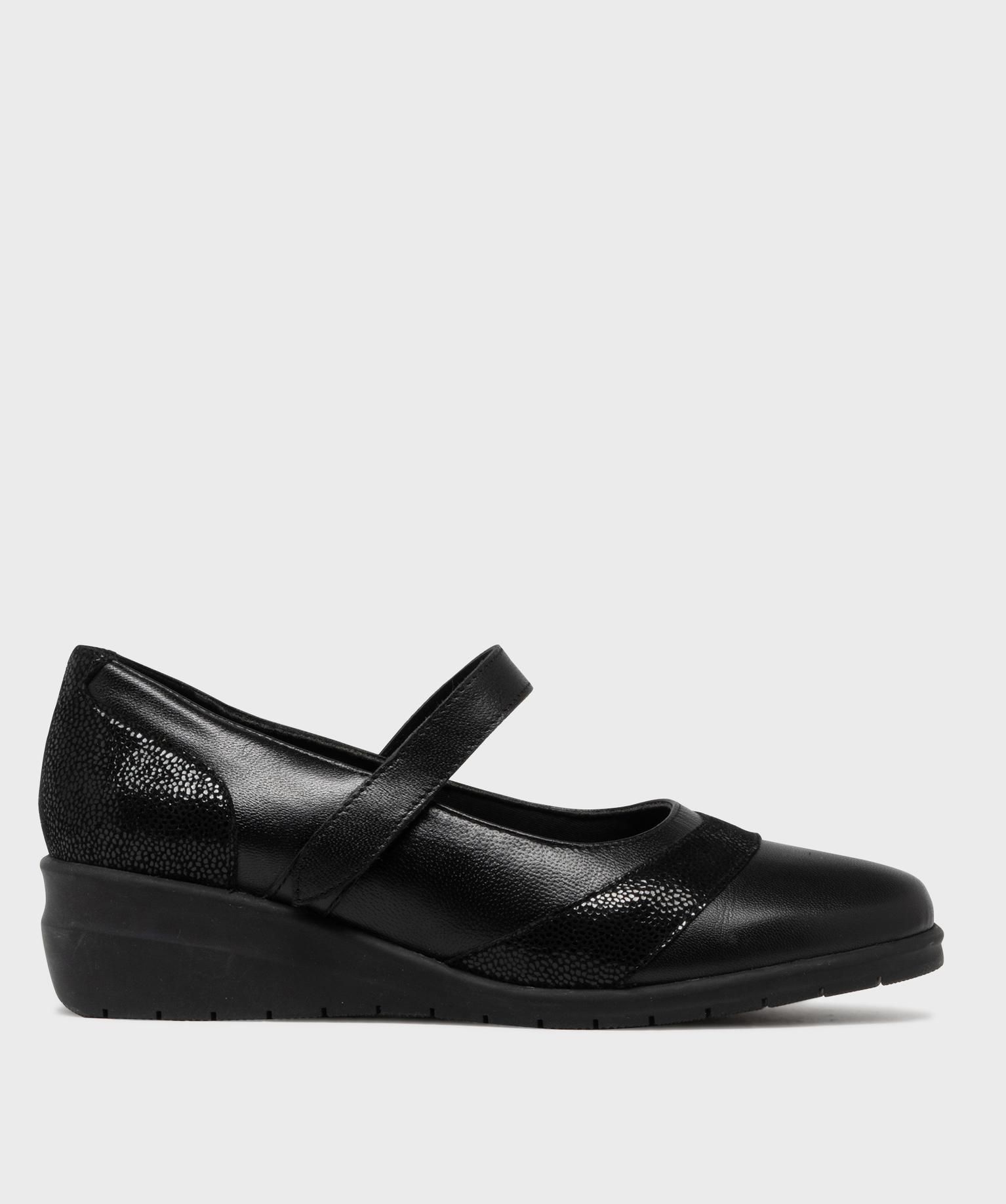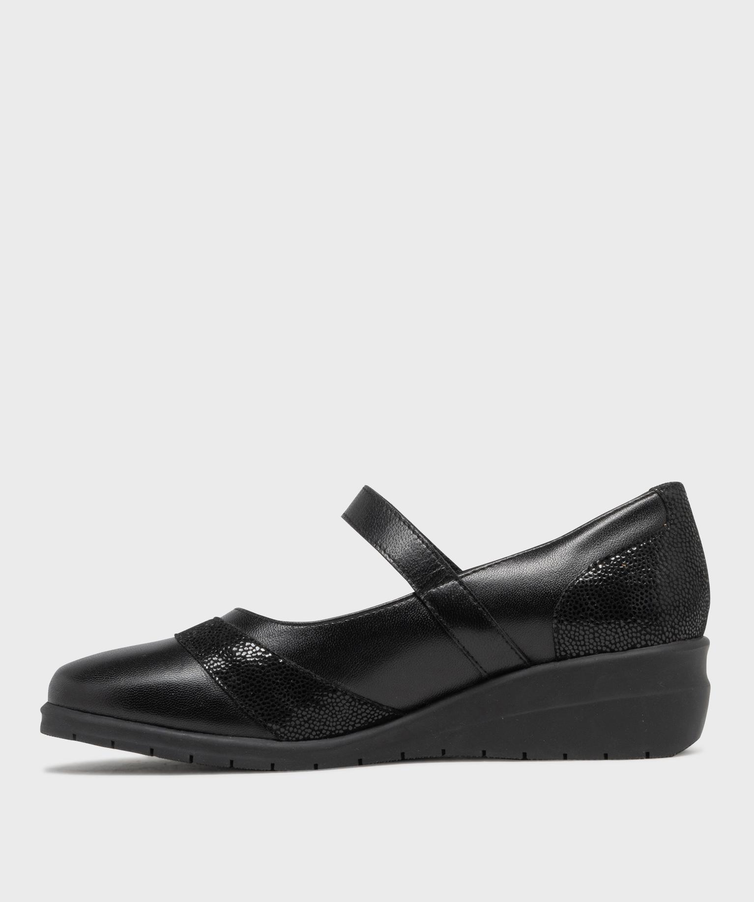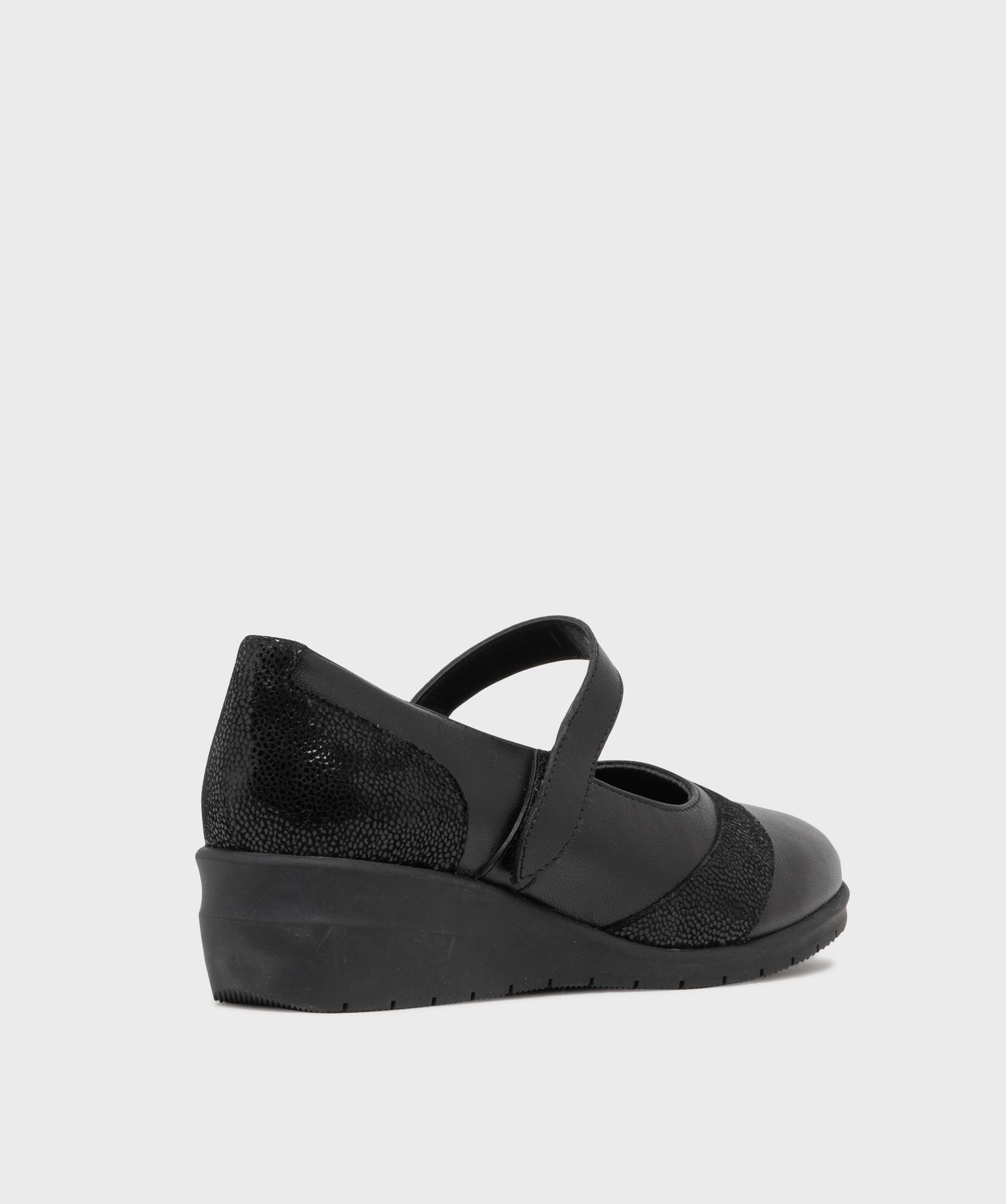 Adoptez un look féminin sans compromis sur le confort de vos pieds sensibles avec ces babies pour femme à talon compensé de 4 cm. Conçues pour vous accompagner au quotidien et issues de notre gamme confort, ces chaussures offrent légèreté, souplesse et maintien. Leur fine bride à scratch permet un ajustement parfait en toute simplicité. Le dessus en cuir est rehaussé d’empiècements irisés à l’avant et au talon, pour une touche élégante et lumineuse. L’intérieur, doublé et finement matelassé, intègre une semelle moelleuse en cuir pour un confort durable.