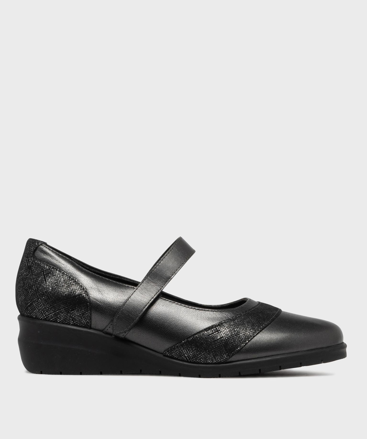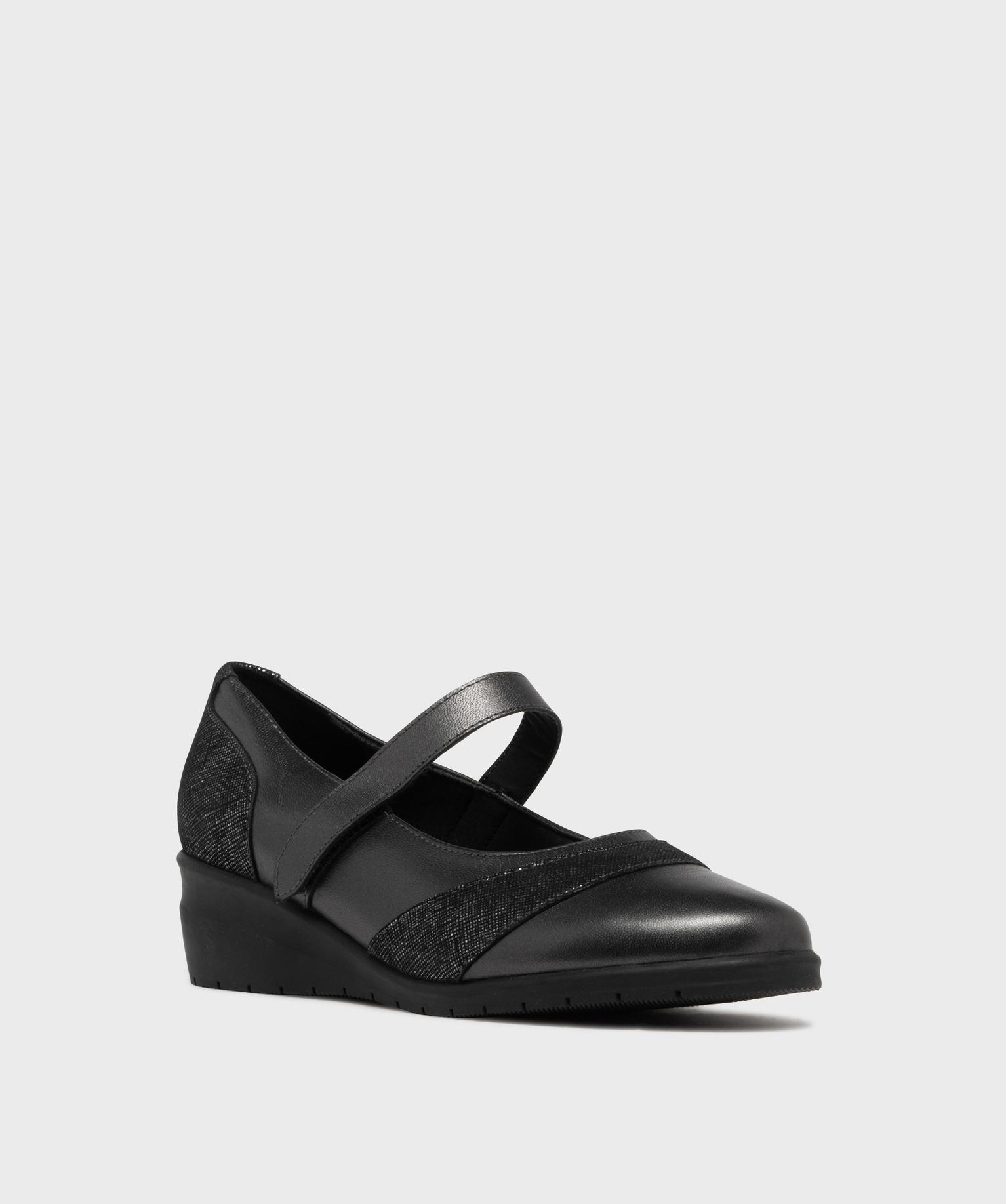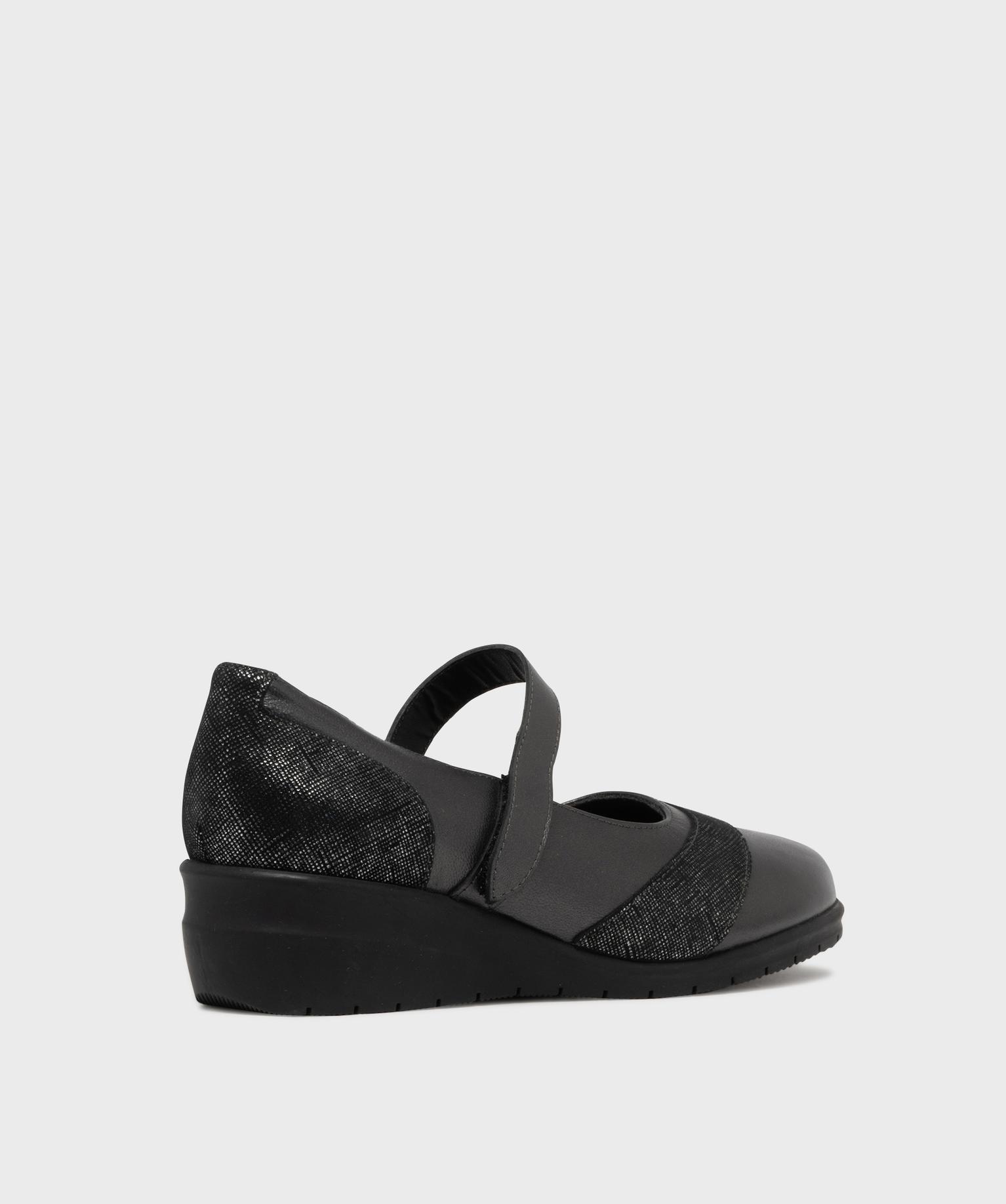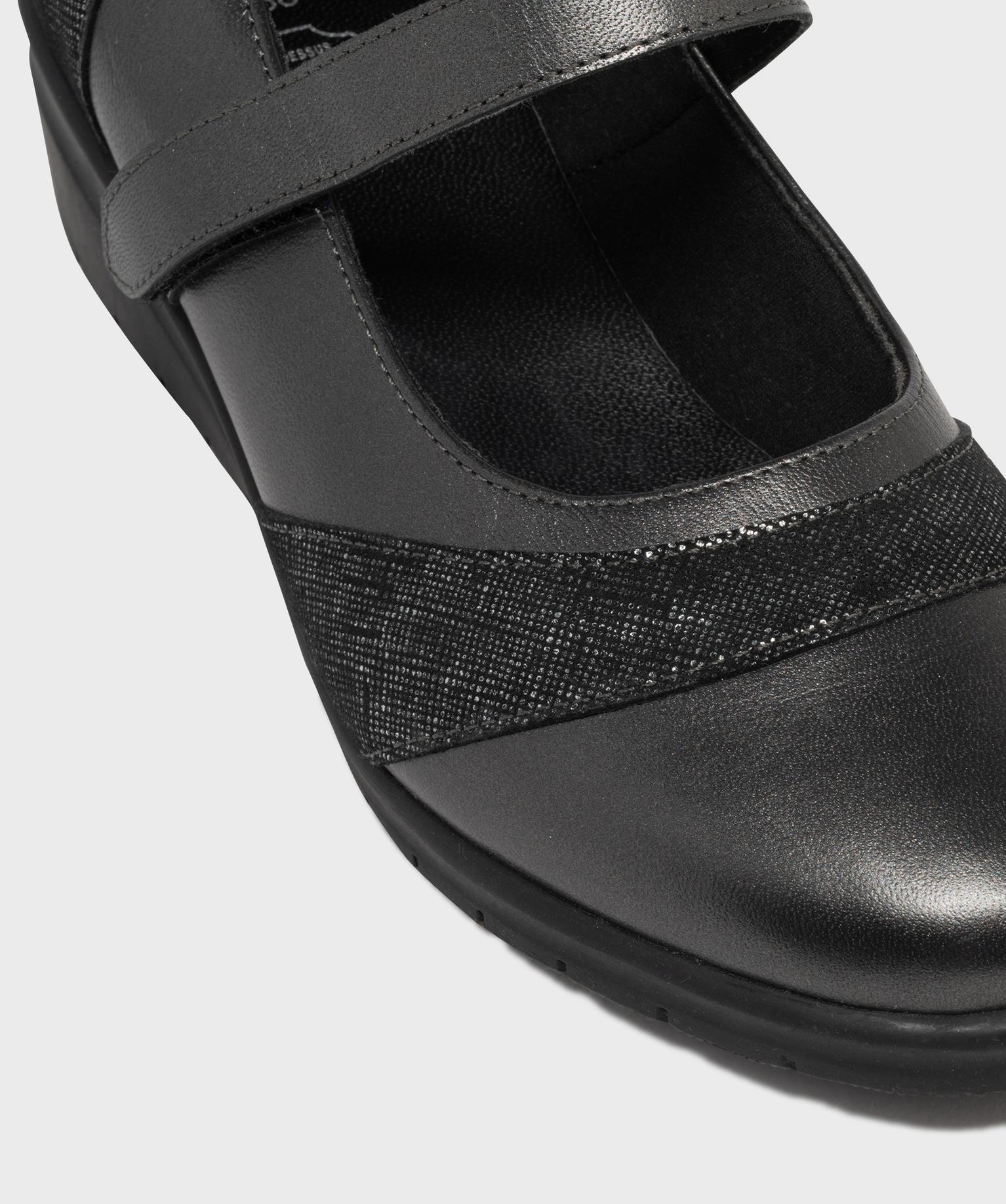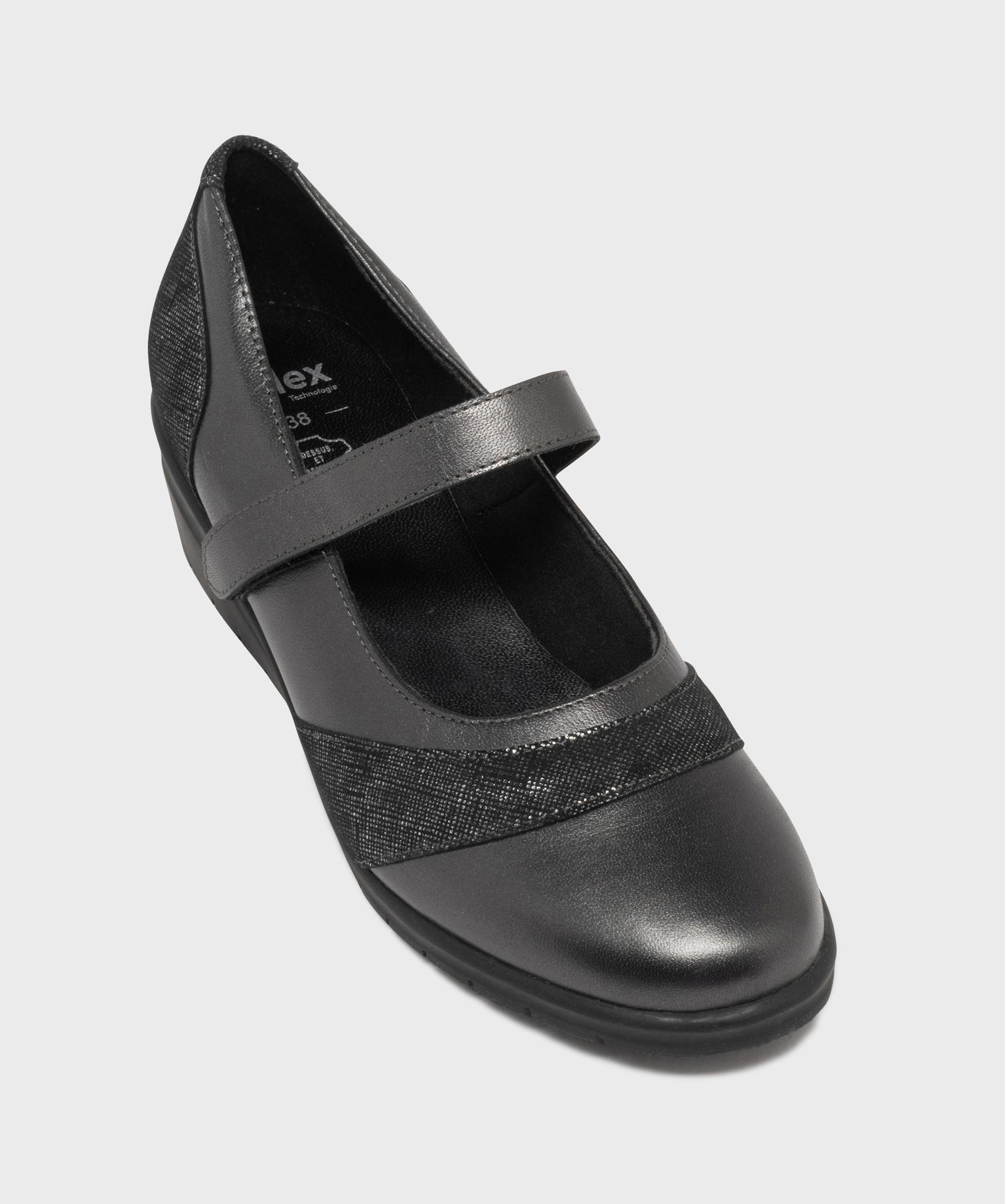 Adoptez un look féminin sans compromis sur le confort de vos pieds sensibles avec ces babies pour femme à talon compensé de 4 cm. Conçues pour vous accompagner au quotidien et issues de notre gamme confort, ces chaussures offrent légèreté, souplesse et maintien. Leur fine bride à scratch permet un ajustement parfait en toute simplicité. Le dessus en cuir est rehaussé d’empiècements irisés à l’avant et au talon, pour une touche élégante et lumineuse. L’intérieur, doublé et finement matelassé, intègre une semelle moelleuse en cuir pour un confort durable.