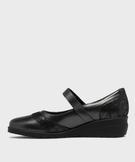 Adoptez un look féminin sans compromis sur le confort de vos pieds sensibles avec ces babies pour femme à talon compensé de 4 cm. Conçues pour vous accompagner au quotidien et issues de notre gamme confort, ces chaussures offrent légèreté, souplesse et maintien. Leur fine bride à scratch permet un ajustement parfait en toute simplicité. Le dessus en cuir est rehaussé d’empiècements irisés à l’avant et au talon, pour une touche élégante et lumineuse. L’intérieur, doublé et finement matelassé, intègre une semelle moelleuse en cuir pour un confort durable.