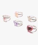 Nos petites coquettes vont se réjouir ! Offrez-leur ce lot de 5 bagues fantaisie pour fille. Des bagues à paillettes et à motifs papillon, fleur, lapin ou encore coeur. Ces jolies bagues pour fille sont présentées dans un joli coffret en forme de fleur pour le plus grand bonheur des petites filles.