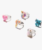 Bagues fille avec motifs licornes et coeur (coffret de 5) rose vif