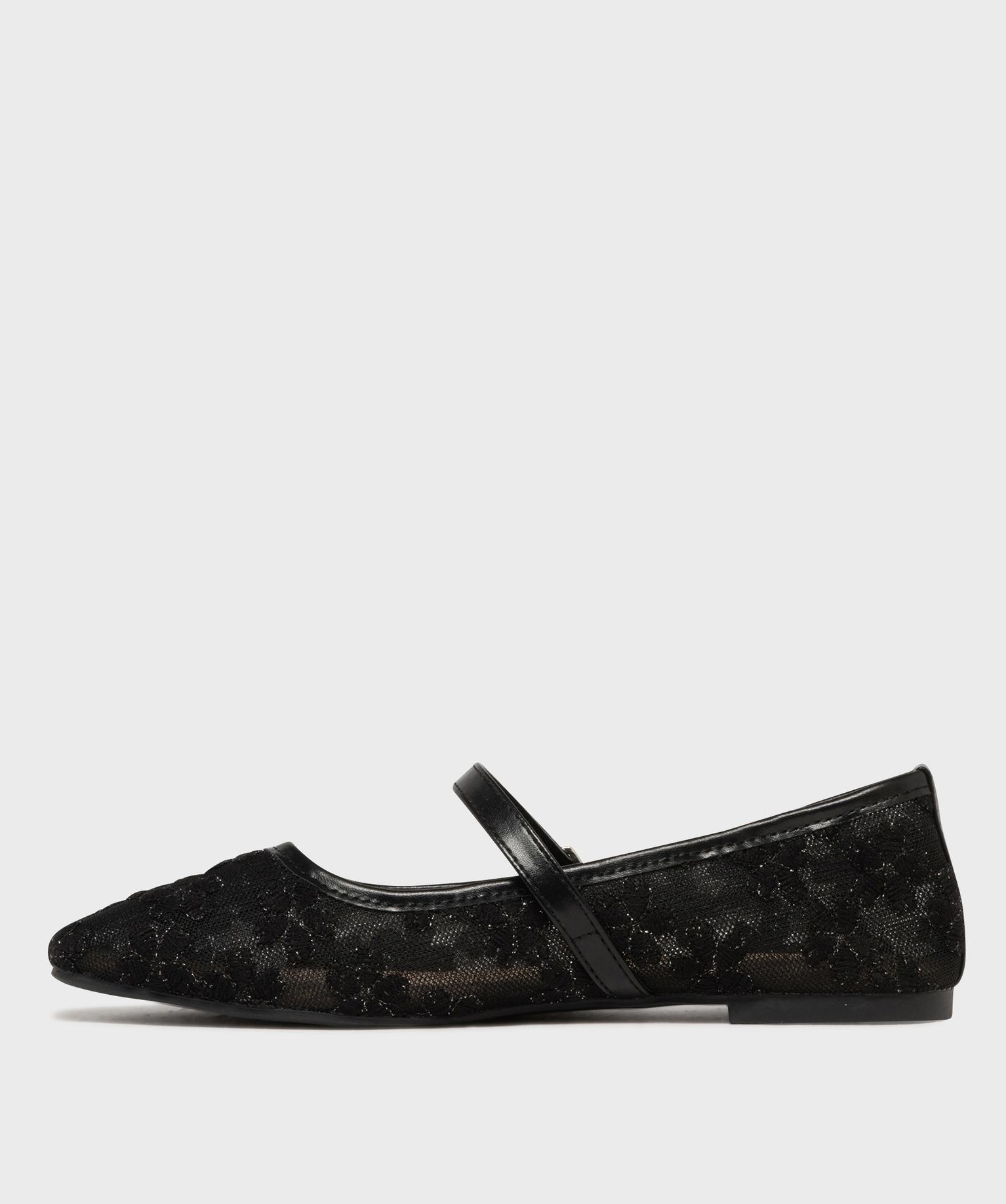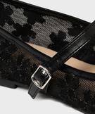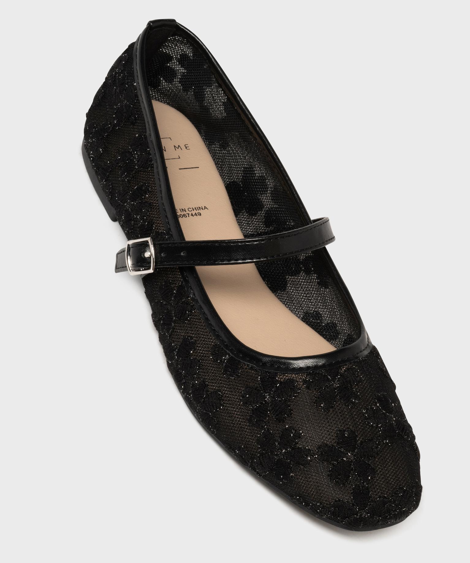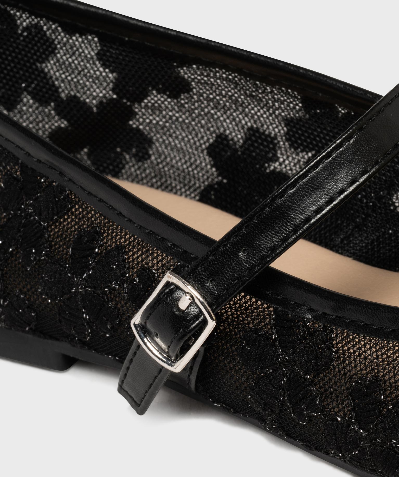 Ballerine à bout carré et bride en tulle brodé femme - Follow Me noir