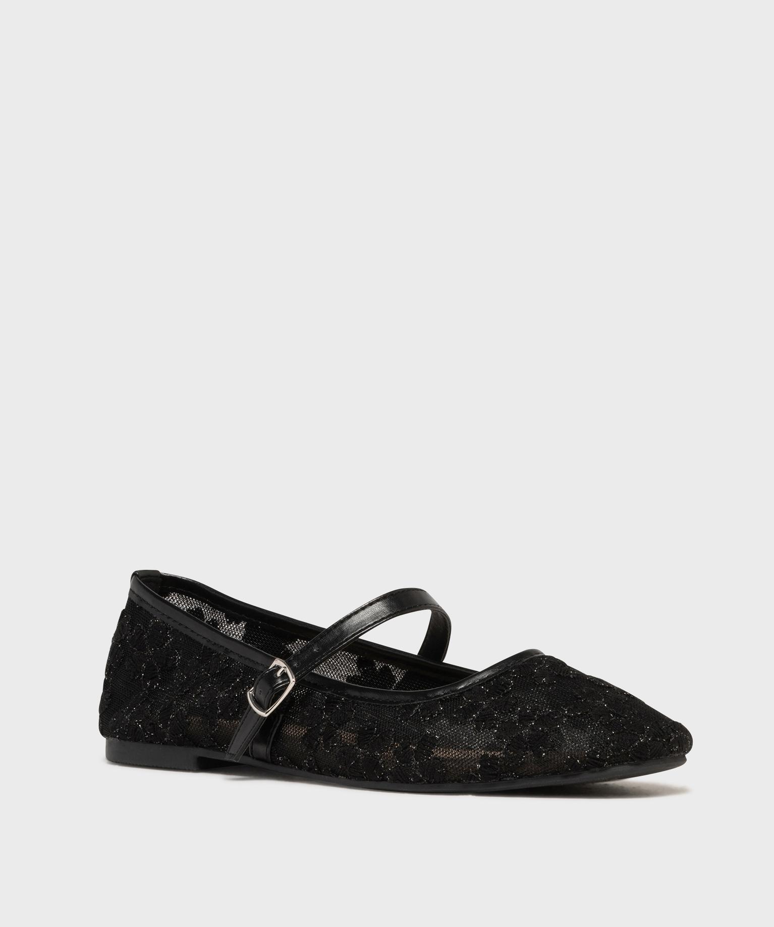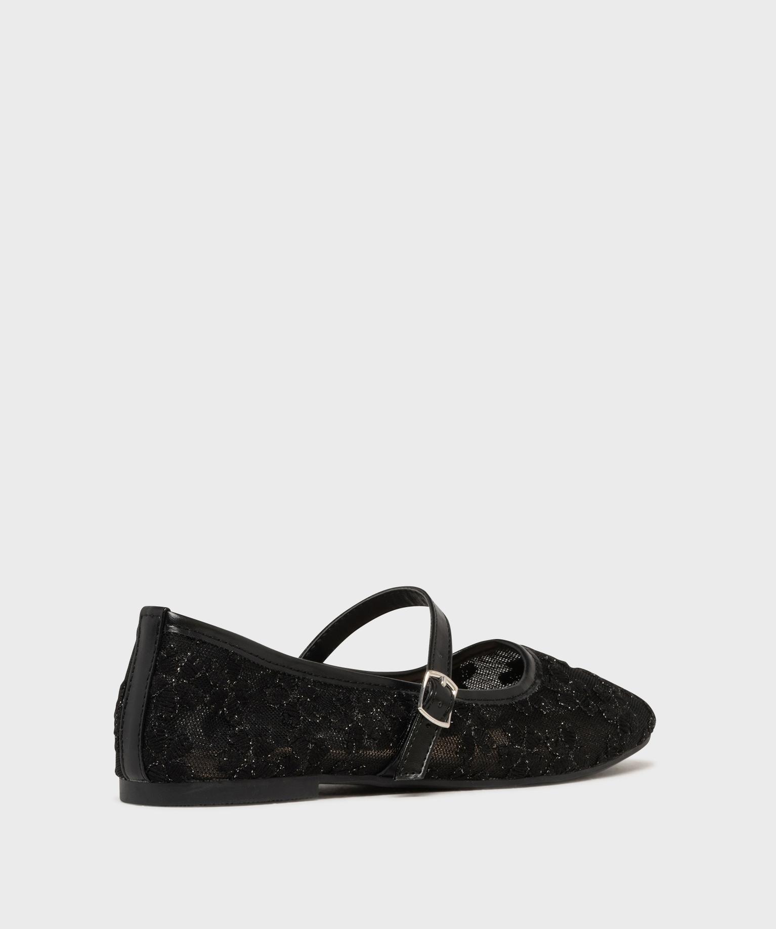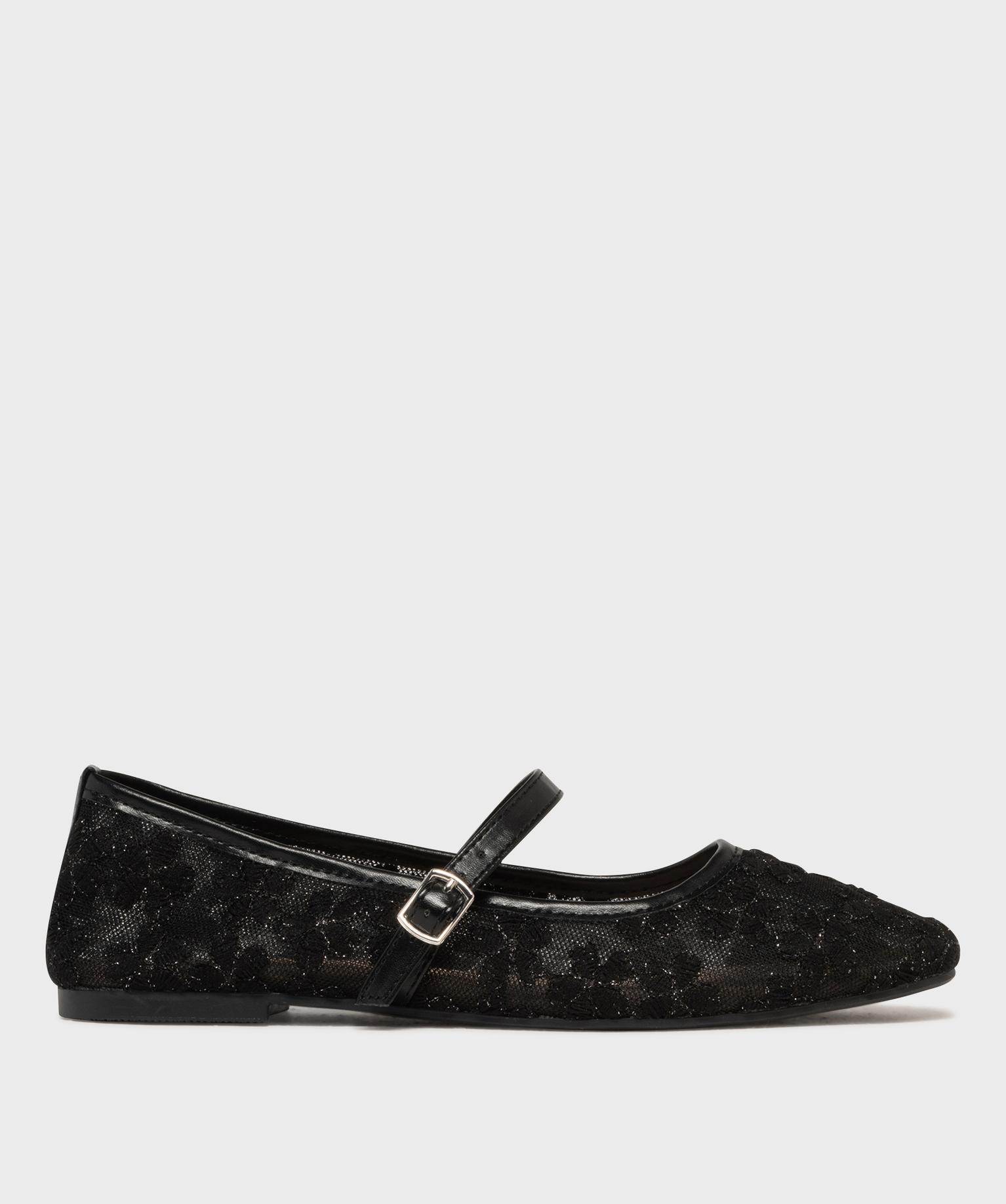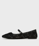 Ballerine à bout carré et bride en tulle brodé femme - Follow Me noir