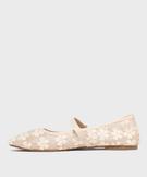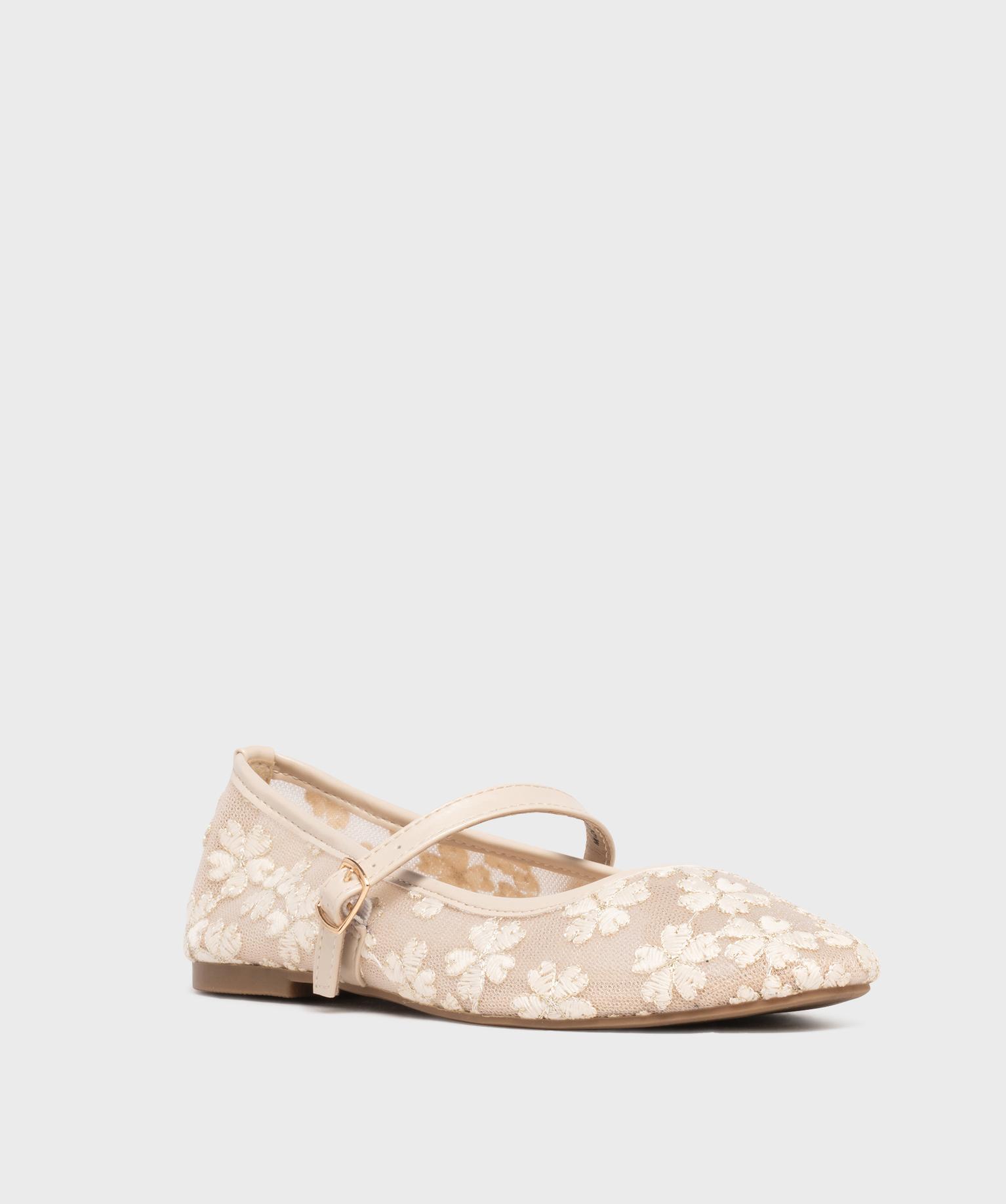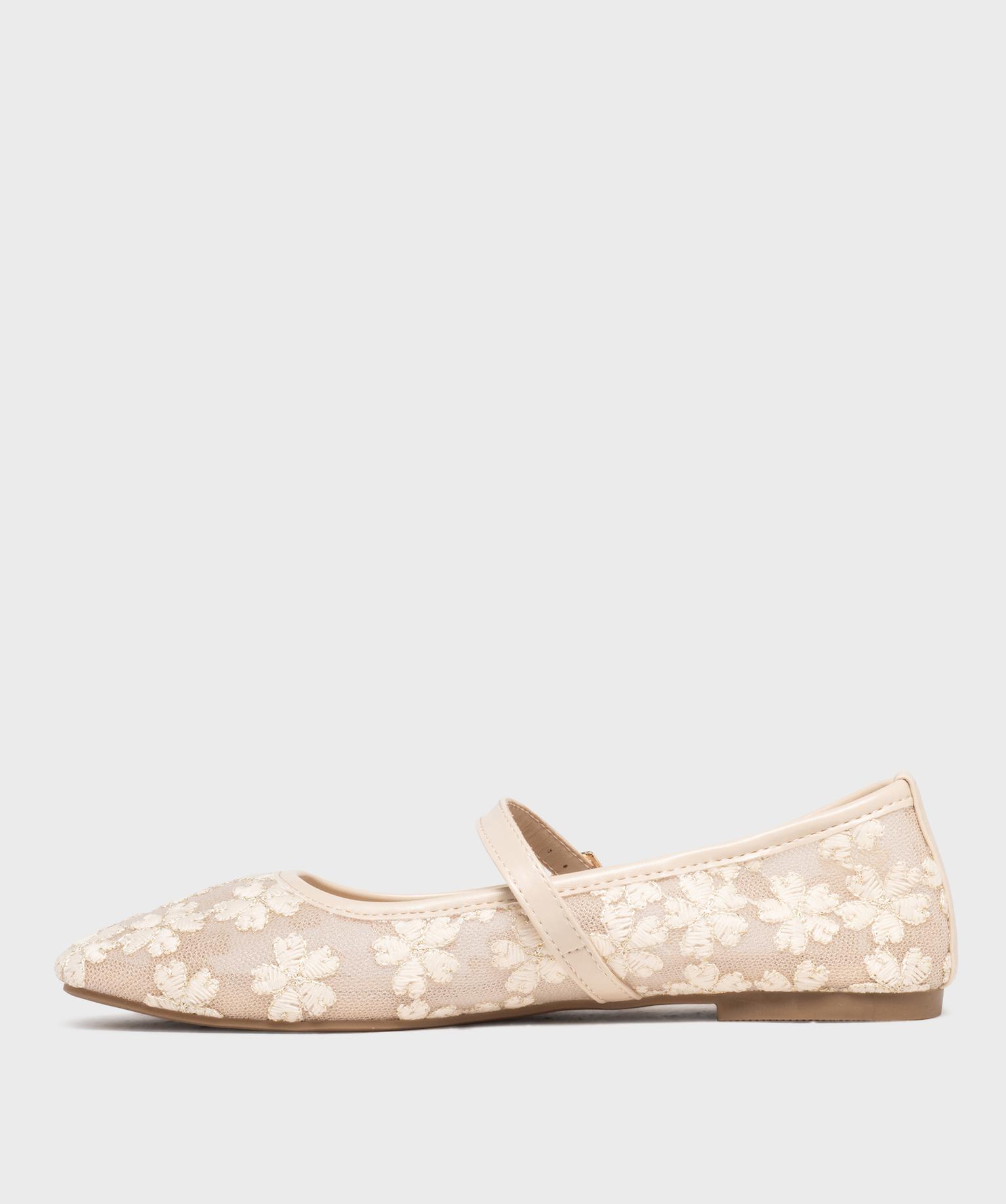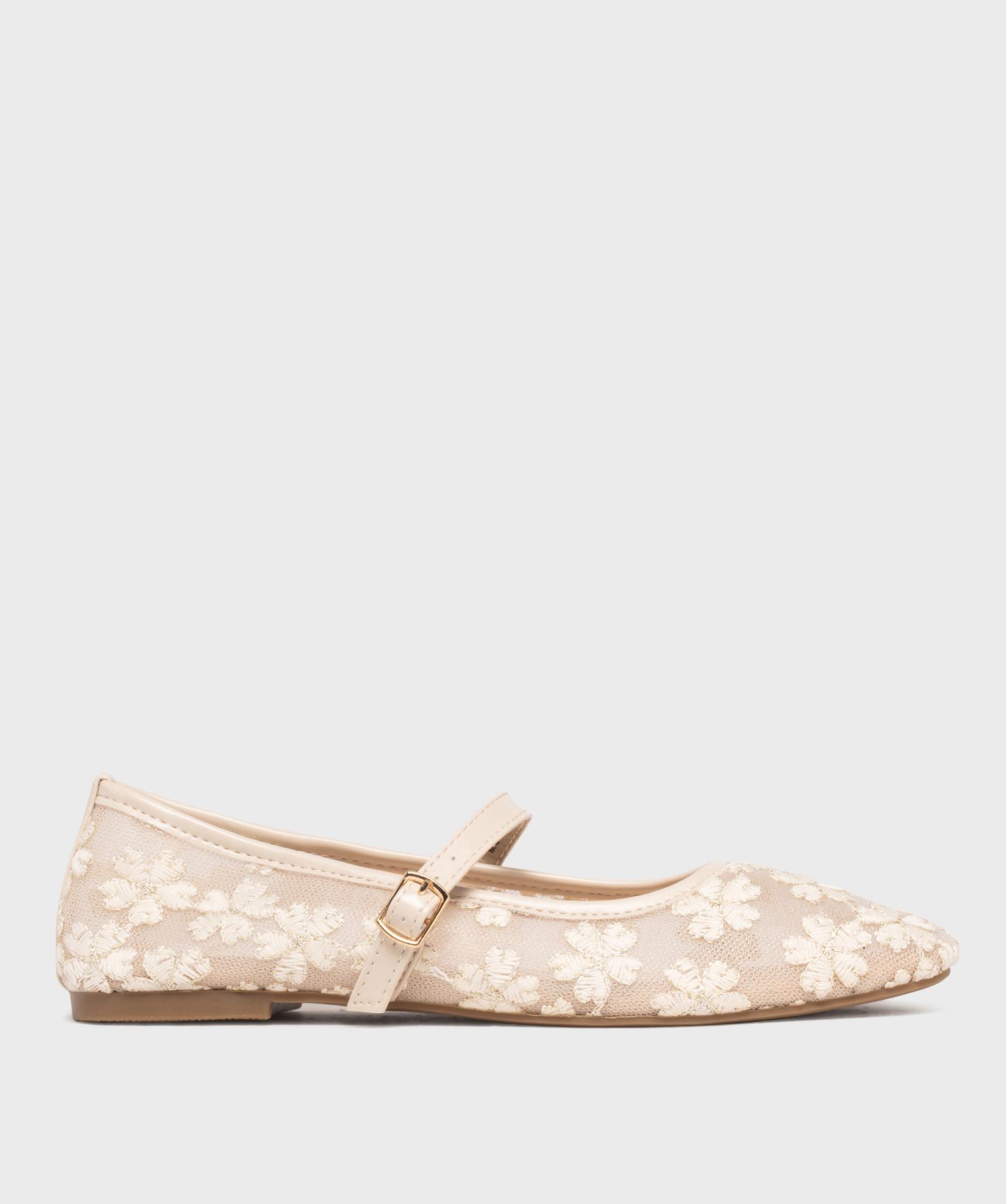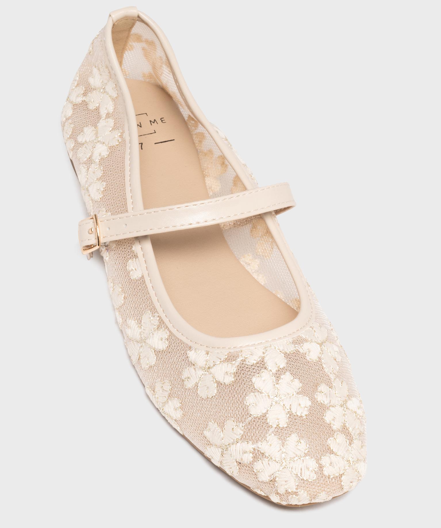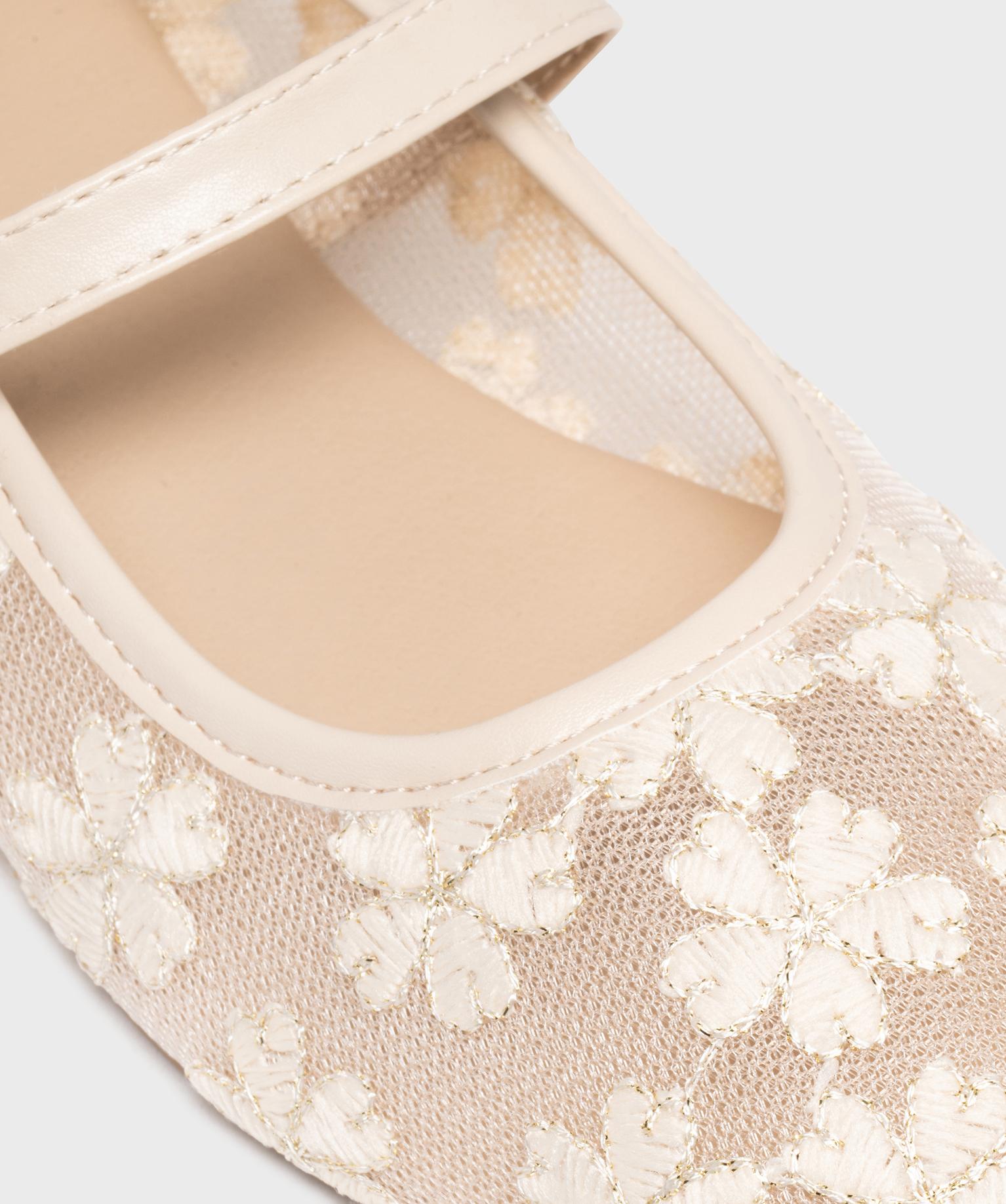 Ballerine à bout carré et bride en tulle brodé femme - Follow Me ecru