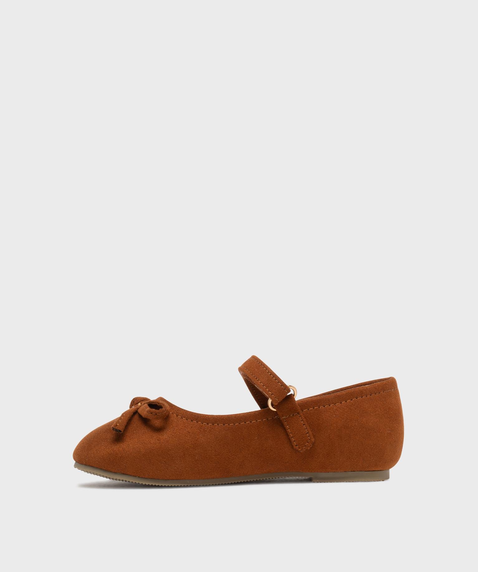 Ballerines à noeud avec bride à scratch fille - LuluCastagnette marron