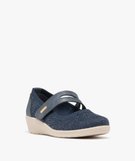 Ces ballerines femme sont idéales pour prendre soin des pieds sensibles. Conçues en mesh incrusté de fil métallisé, elles s’adaptent à la forme du pied et sont dotées d’une semelle intérieure rembourrée très confortable. Des ballerines confort sont renforcées au talon par un empiècement aspect cuir scintillant et se ferment à l’aide d’une bride à scratch assortie, décorée d’un détail métallique. Ces chaussures à scratch sont posées sur une semelle compensée légère et confortable. Elles ajouteront une touche d'éclat à toutes vos tenues estivales !