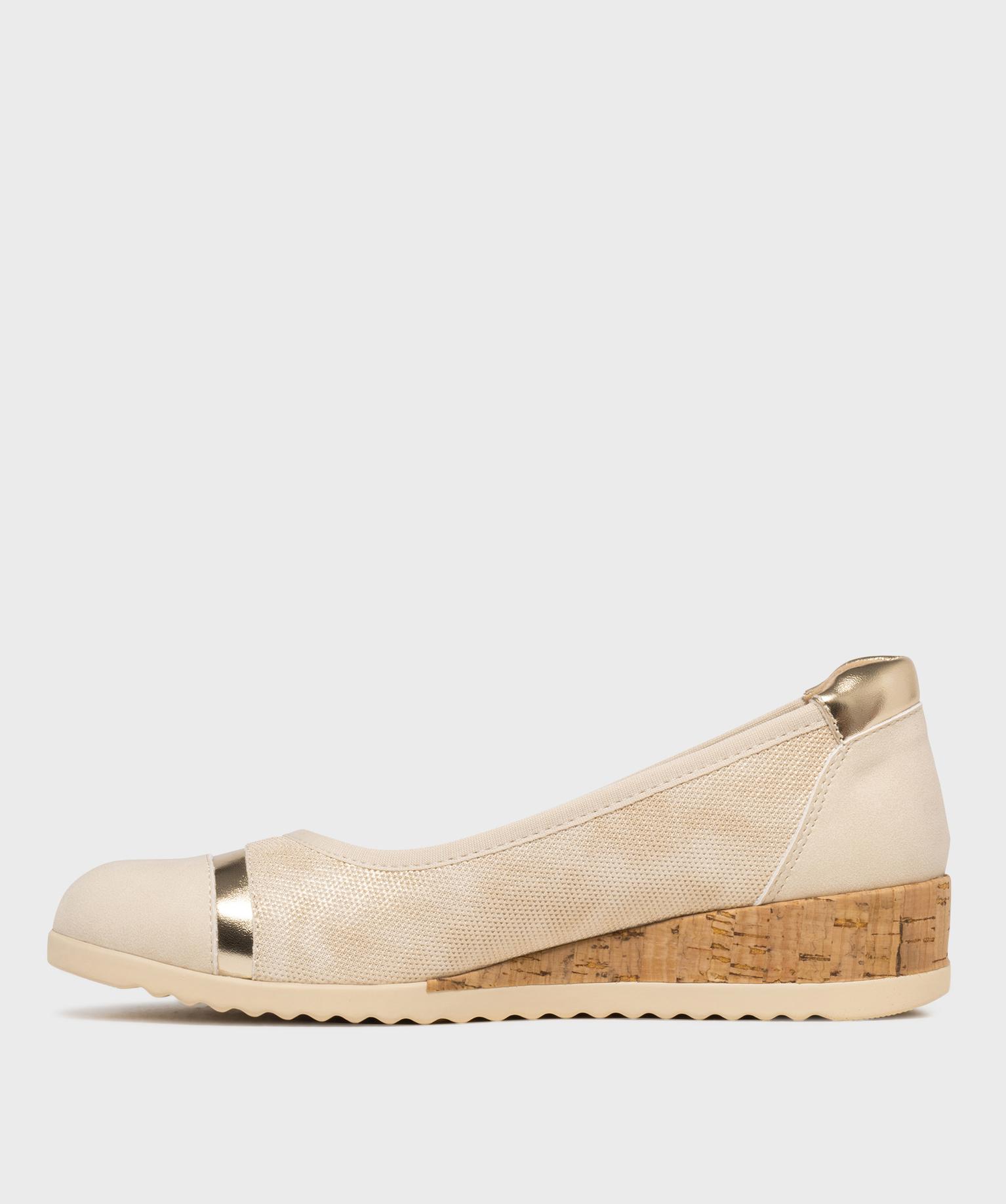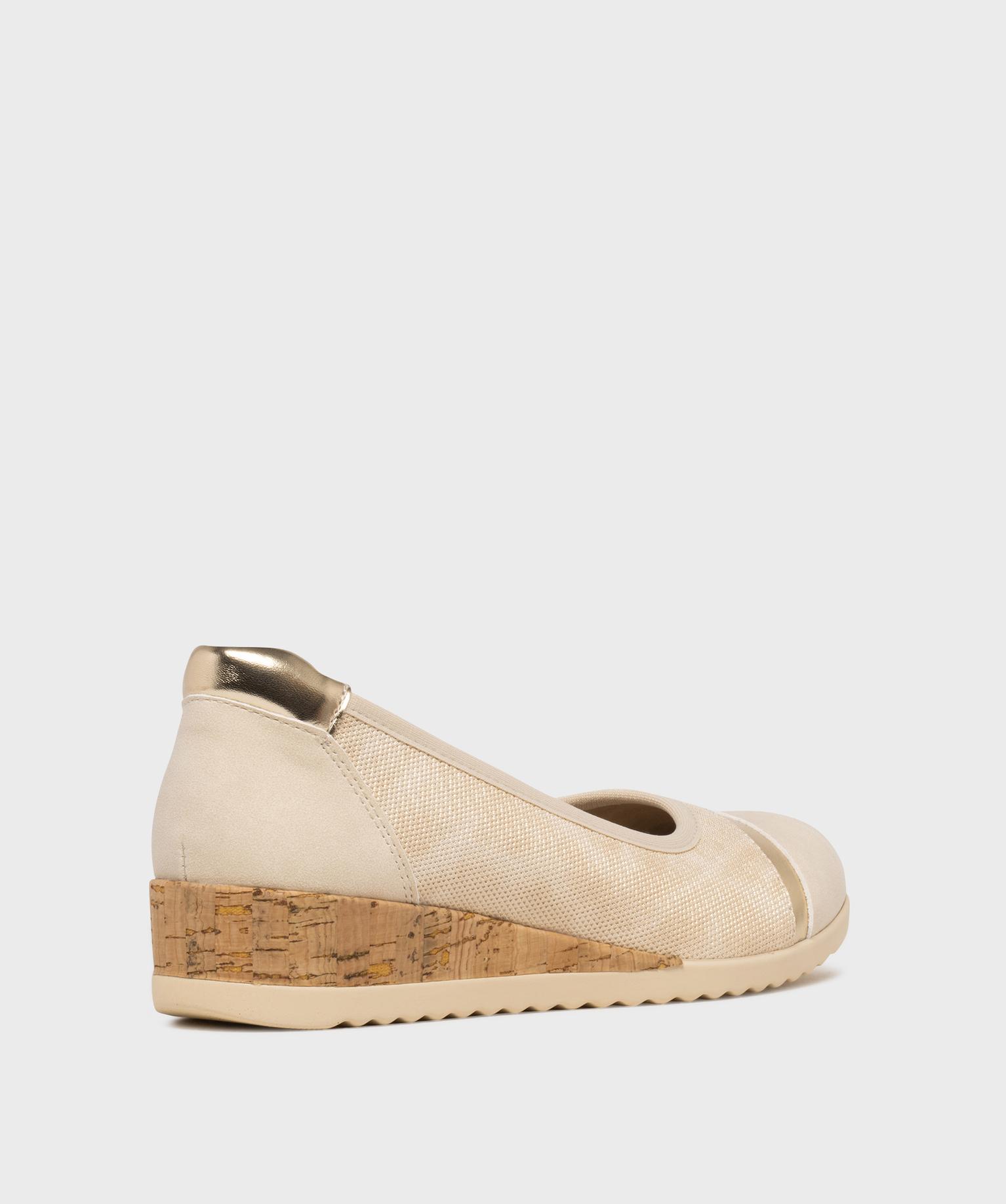 Ballerines confort métallisées avec talon compensé femme beige clair