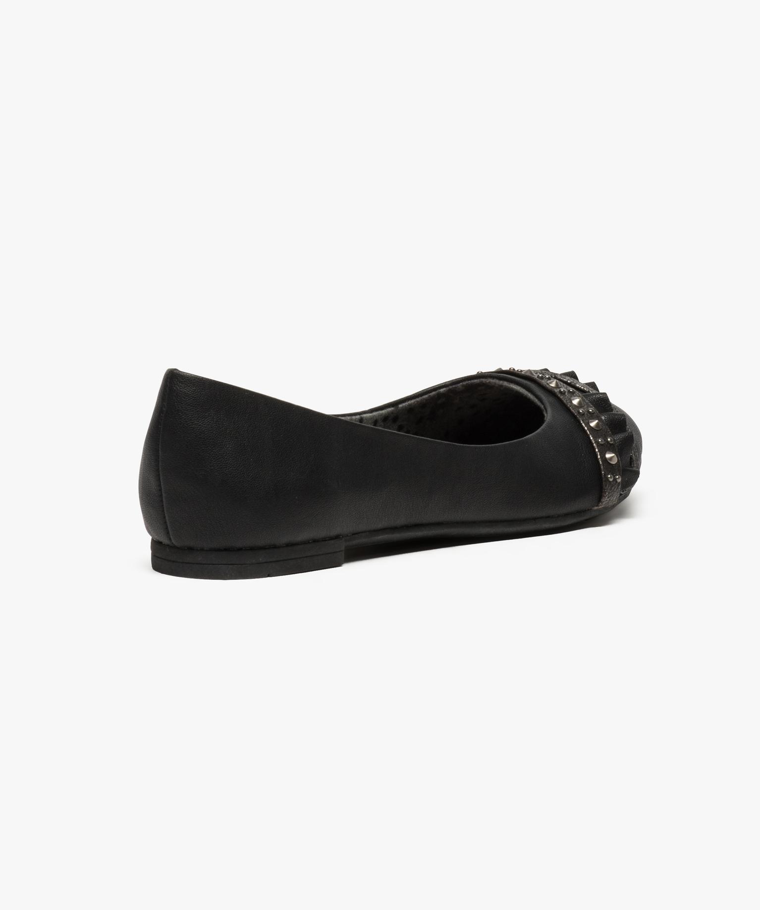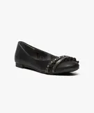 Adeptes des ballerines pour leur charme féminin et leur confort ? Adoptez cette élégante paire que vous ne quitterez pas, même les jours les plus frais, grâce à leur intérieur doublé d'un textile tout doux ! Sur le devant, un entrelacs de brides, volants, matière pailletée et clous apporte une touche originale et rock.