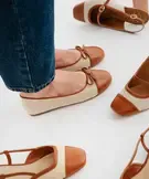 Ballerines en toile et cuir imitation femme - Valentina Baldano marron