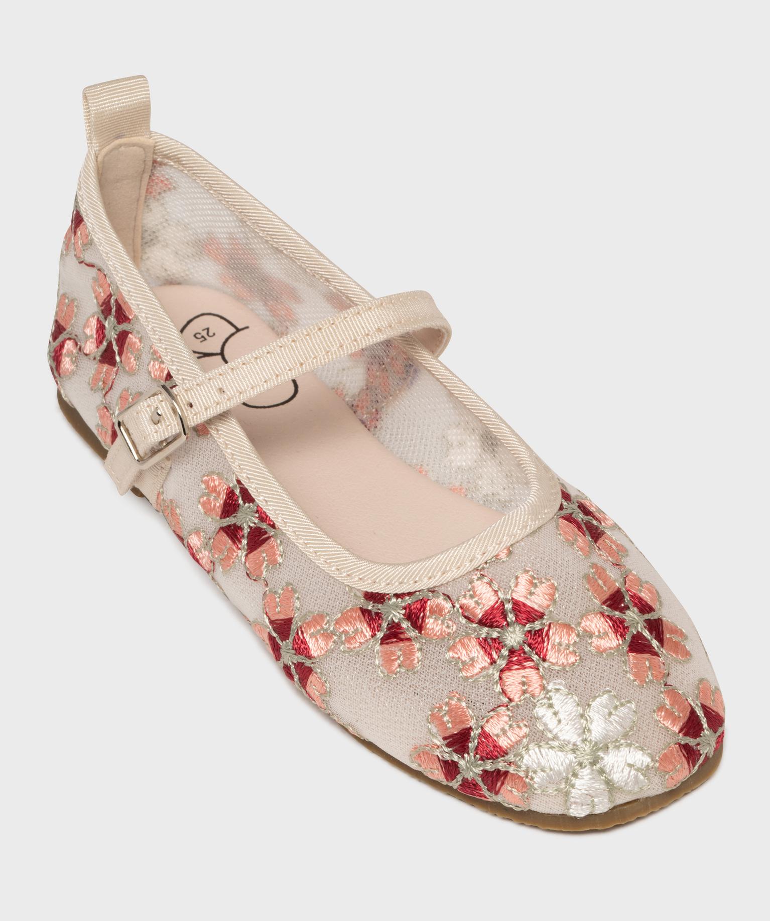 Ballerines en toile résille brodée fille - Lovely Wings ecru