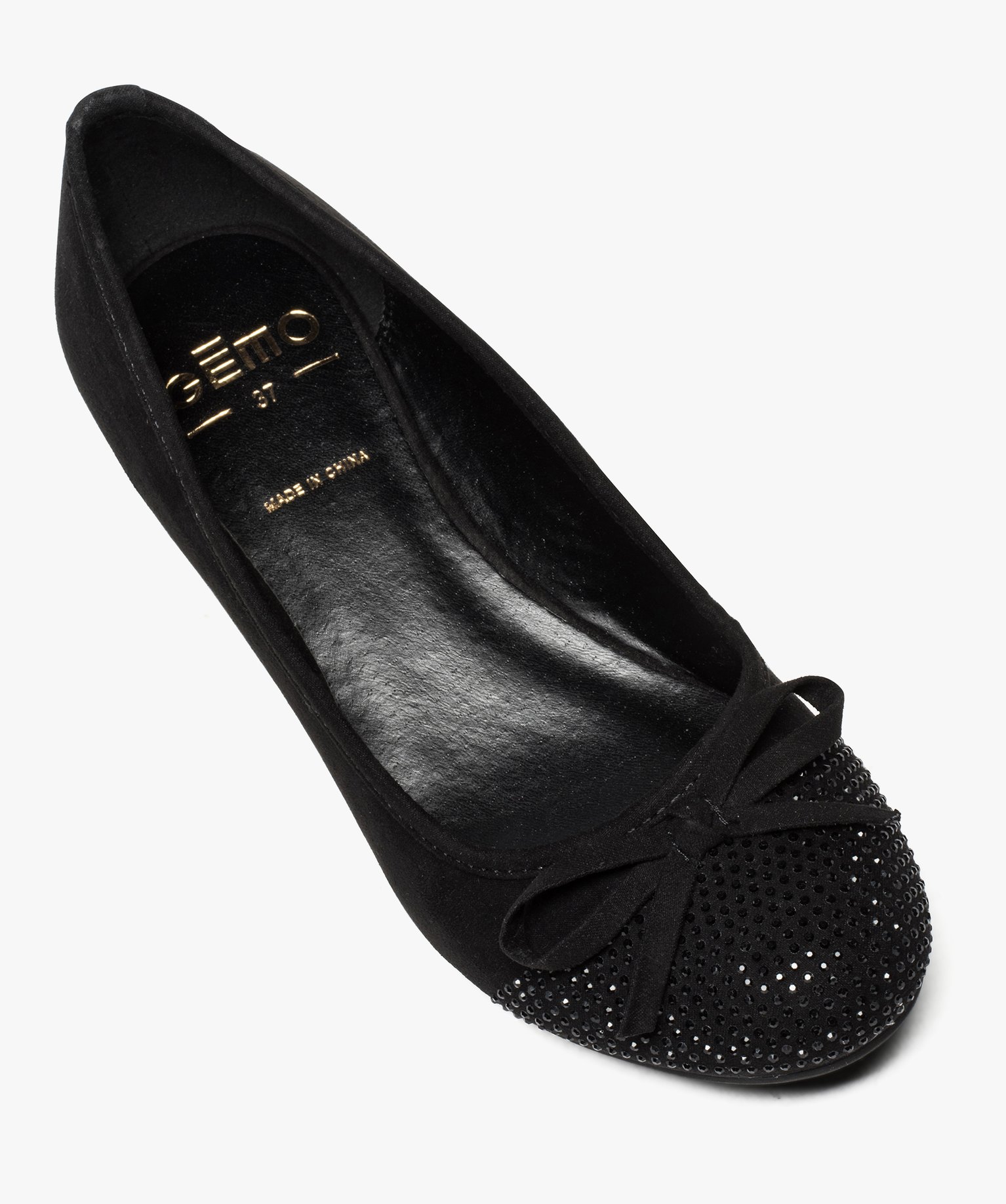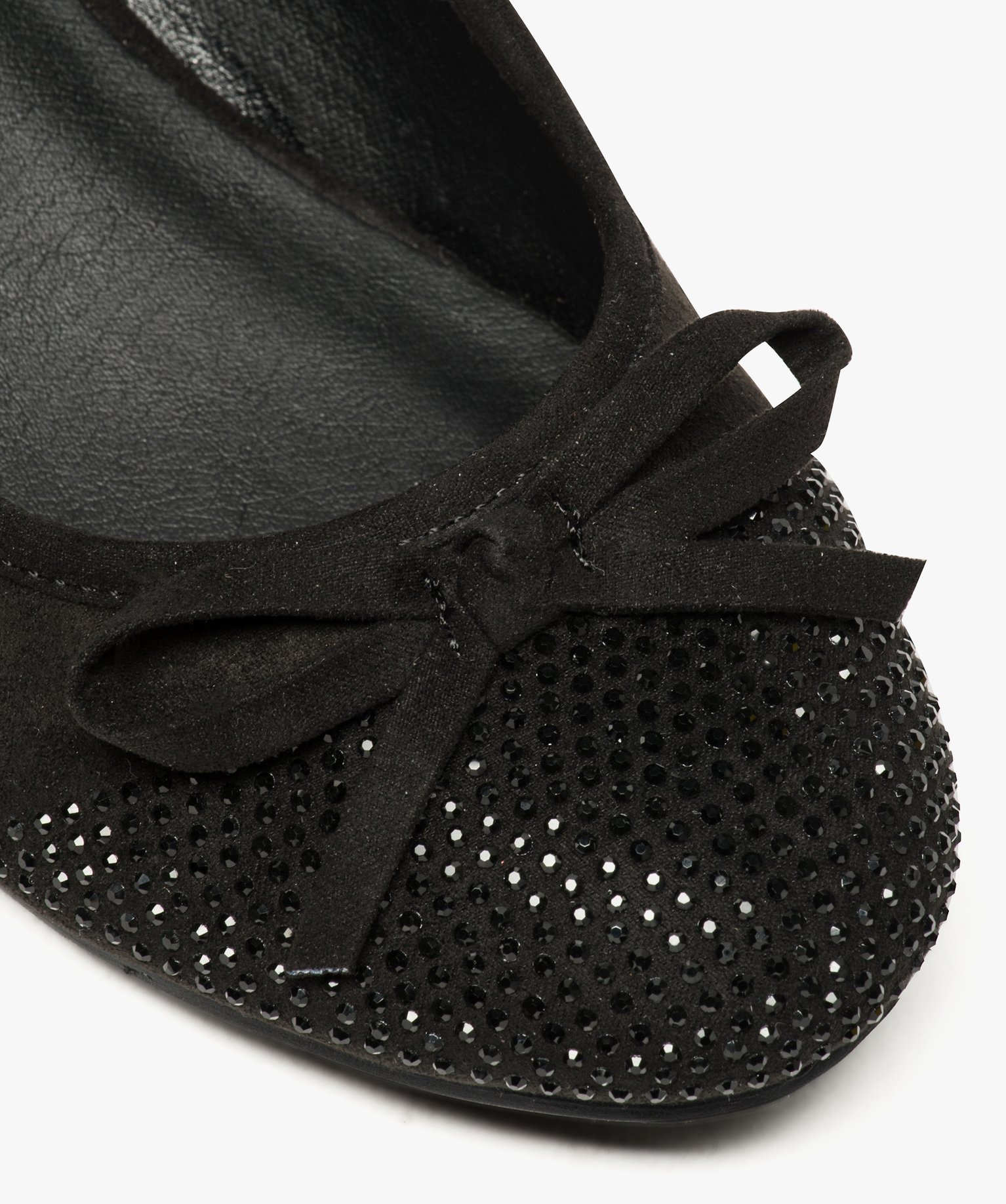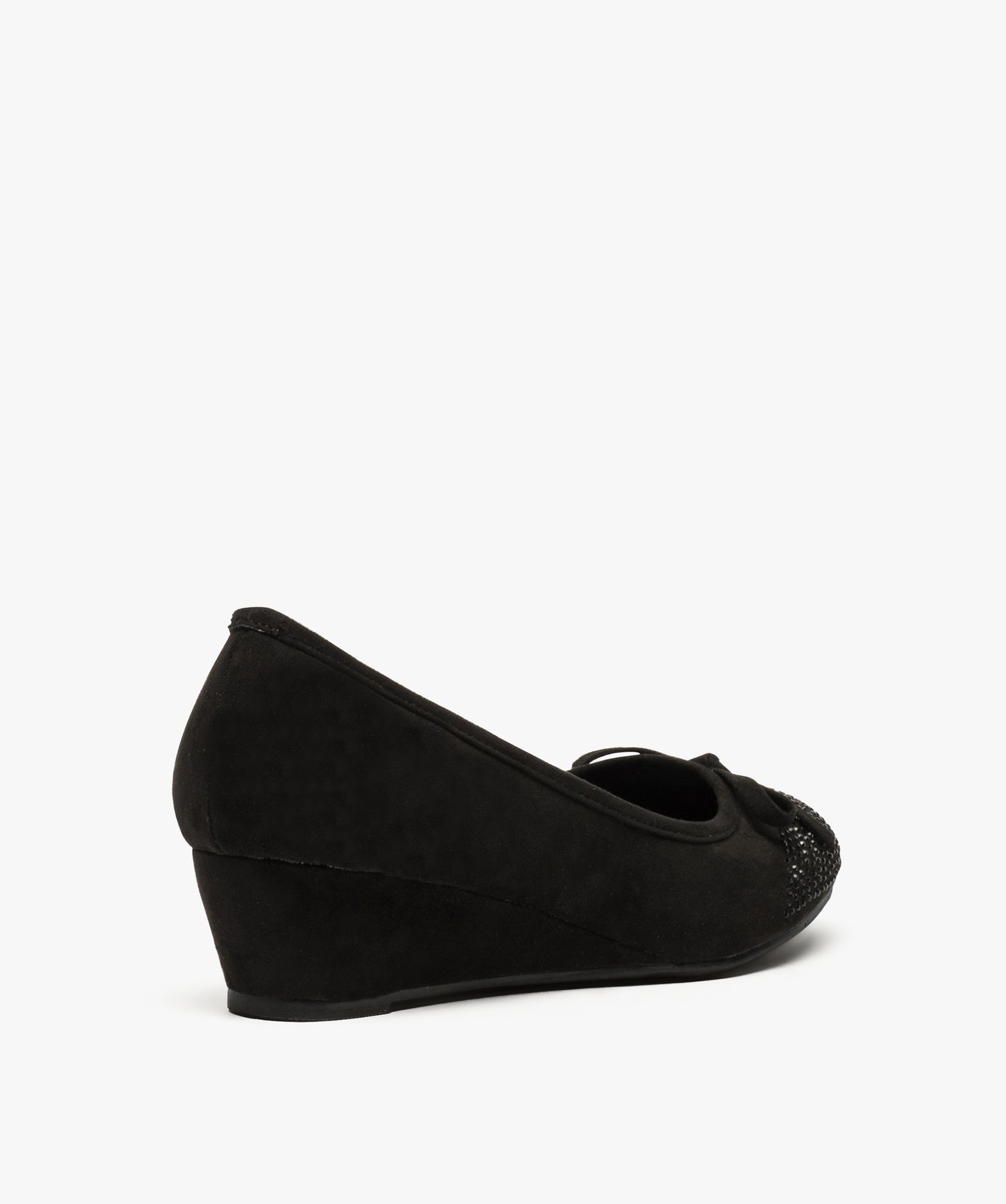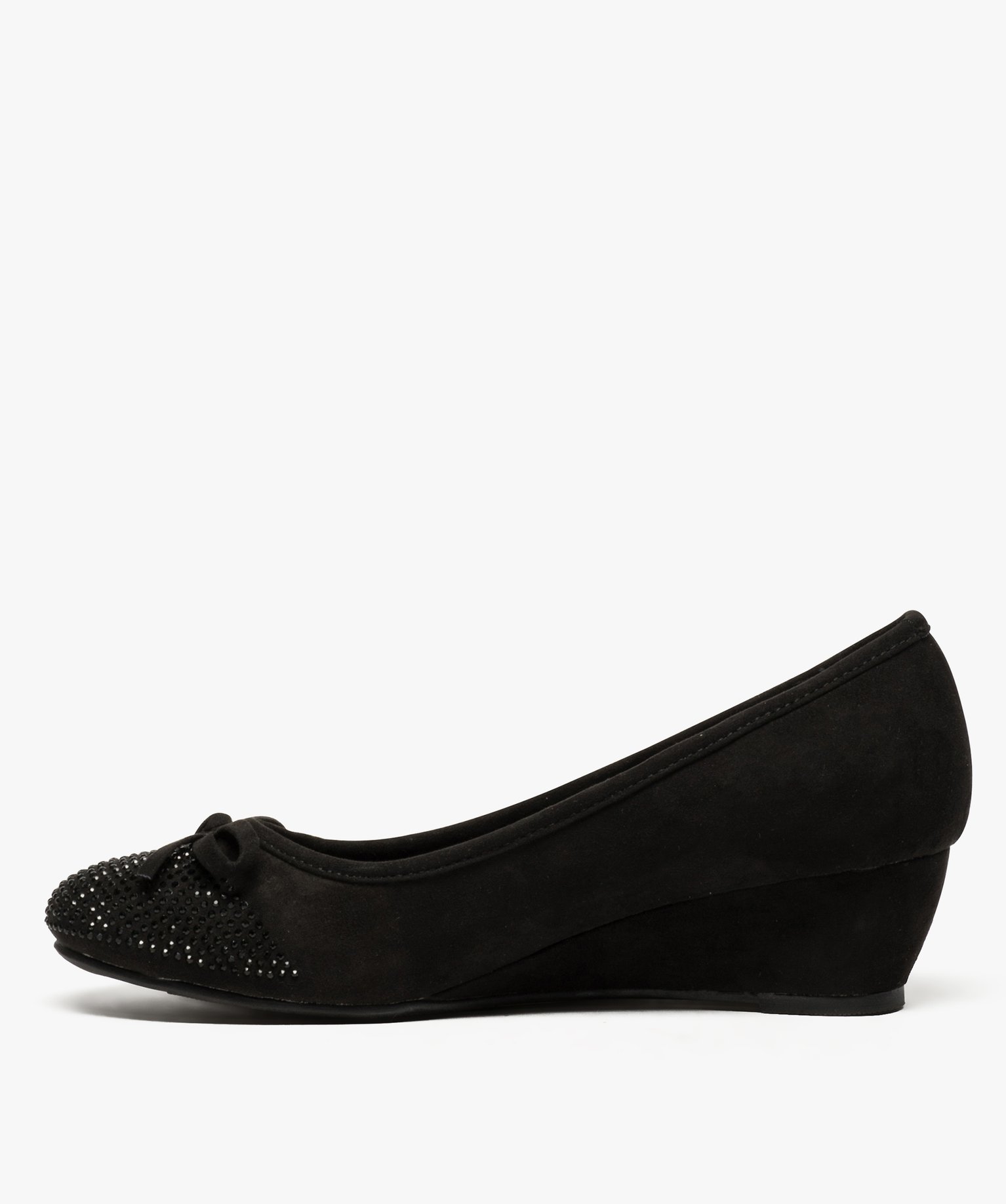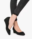 Ballerines femme à talon compensé et strass noir