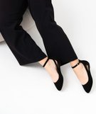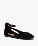 Ballerines femme à talon plat unies avec bride cheville noir