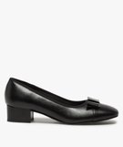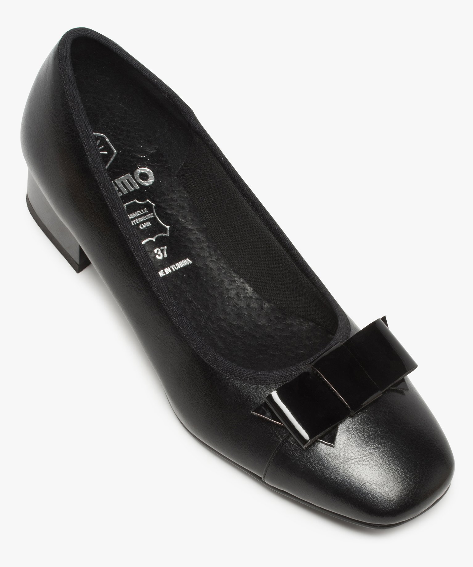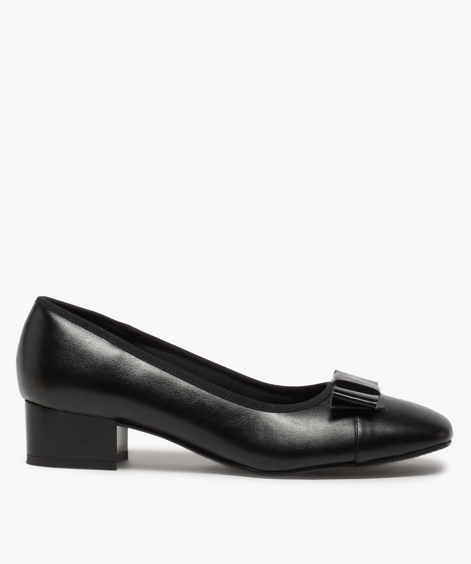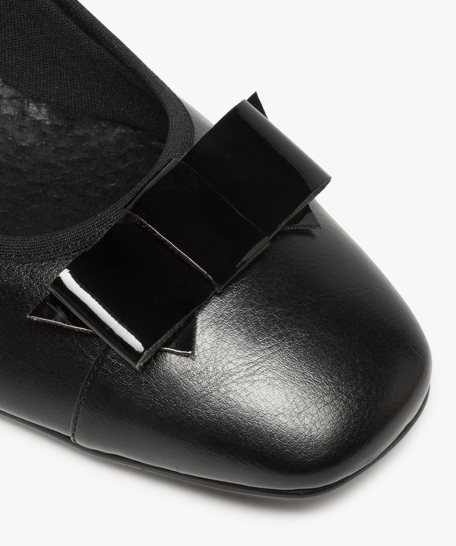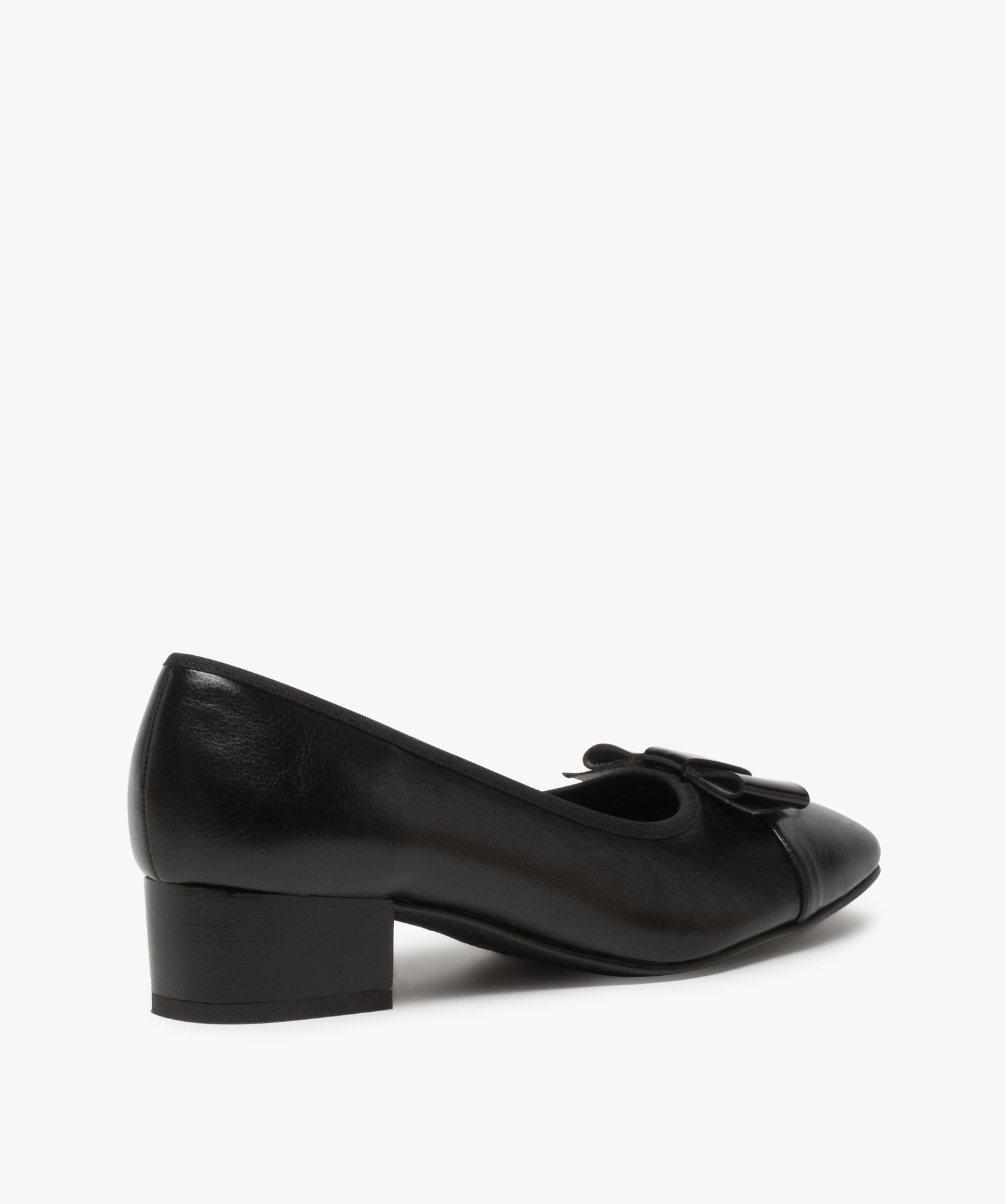 Ballerines femme confort avec petit talon et nœud verni noir