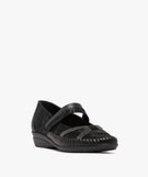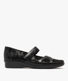 Ballerines femme confort en cuir à bride scratch et fines paillettes[MISSING] noir