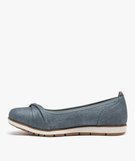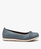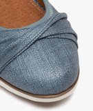 Pour apporter style et confort à vos tenues, ces chaussures confort adoptent la forme de ballerines pour femme, en denim. On adore l'effet drapé à l'avant et la semelle amortissante crantée, munie d'une semelle intermédiaire contrastante rappelant celle des sneakers tendances. Pour prendre soin de vos pieds, la semelle intérieure est en cuir et moussé. Mesdames et mesdemoiselles, ces ballerines confort pourront se porter avec toutes vos tenues préférées : jean, jupe crayon ou tailleur...