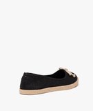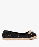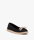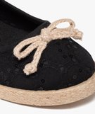 Largement inspirées des espadrilles, ces ballerines pour femme apportent à vos tenues une touche résolument estivale. La tige est en toile brodée ou imprimée en fonction du modèle choisi et montée sur une semelle habillée de cordelette tressée. On retrouve la même cordelette sur le nœud décoratif au bout du pied. Ces chaussures plates d’été s’accorderont à merveille avec un pantalon flare en lin et une blouse.