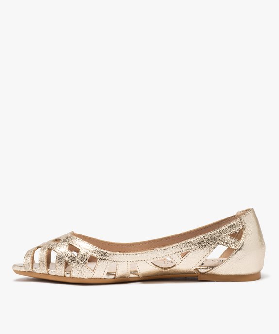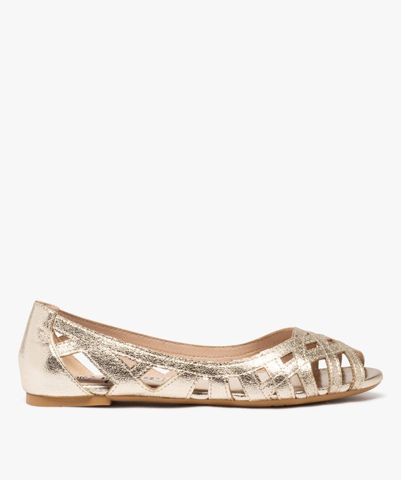Ballerines femme unies et ajourées avec bout ouvert dore