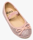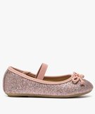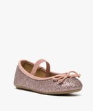 Ballerines fille pailletées avec bride élastique et nœud rose vif