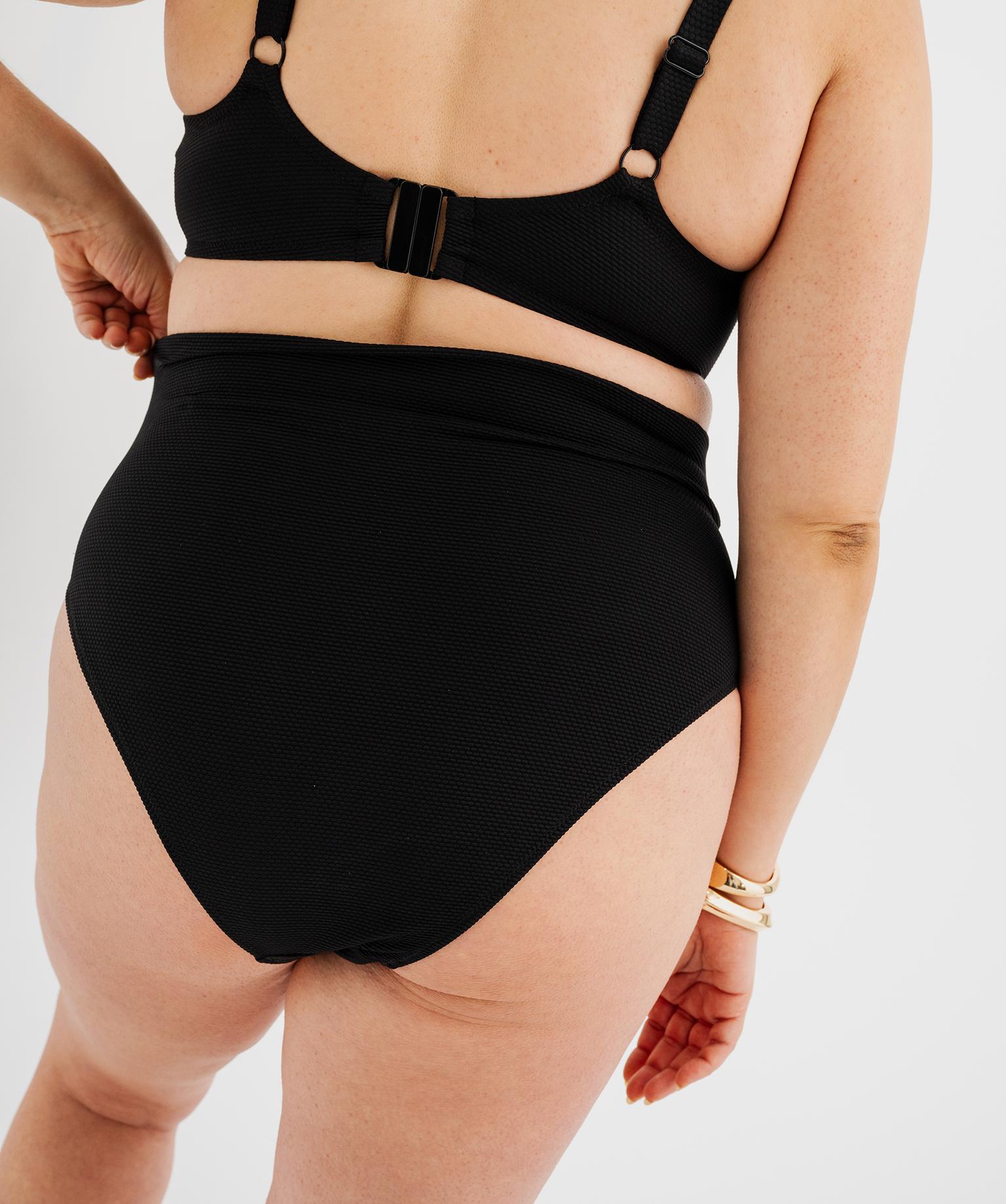 Bas de maillot de bain à ceinture en maille texturé femme grande taille noir