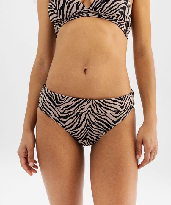 Un bas de maillot de bain femme qui séduit par sa forme culotte et sa taille haute avec revers. La culotte taille haute permet de souligner la taille et de sublimer la silhouette en toute simplicité. Entièrement doublé et doté de finitions élastiques, le bas de maillot offre beaucoup de confort. Cette culotte de bain fantaisie se porte avec le haut de maillot de bain assorti.
