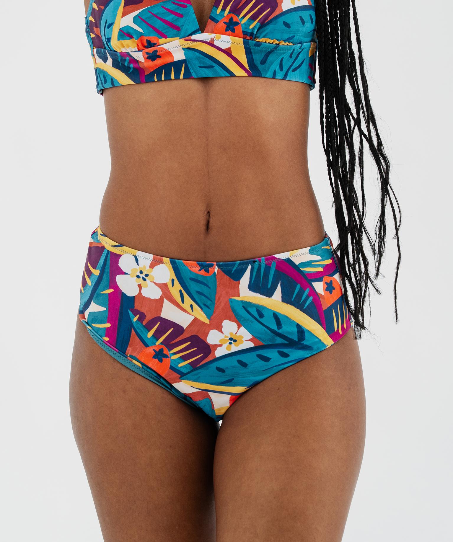Confortable et stylé, ce bas de maillot de bain taille haute va vous accompagner tout l'été ! Sa coupe enveloppe vos hanches et votre ventre, tout en soulignant votre taille et en mettant en valeur vos jambes ! Confectionné dans une matière extensible imprimée de motifs estivaux aux couleurs riches, ce maillot de bain femme est original et élégant. Entièrement doublée, cette culotte de bain garantit une opacité parfaite et un confort optimal. À porter idéalement avec le haut de la même collection pour un total look sophistiqué, ou à combiner avec un haut de maillot uni pour jouer le mix&match décalé.