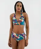 Bas de maillot de bain culotte taille haute fleurie femme bleu