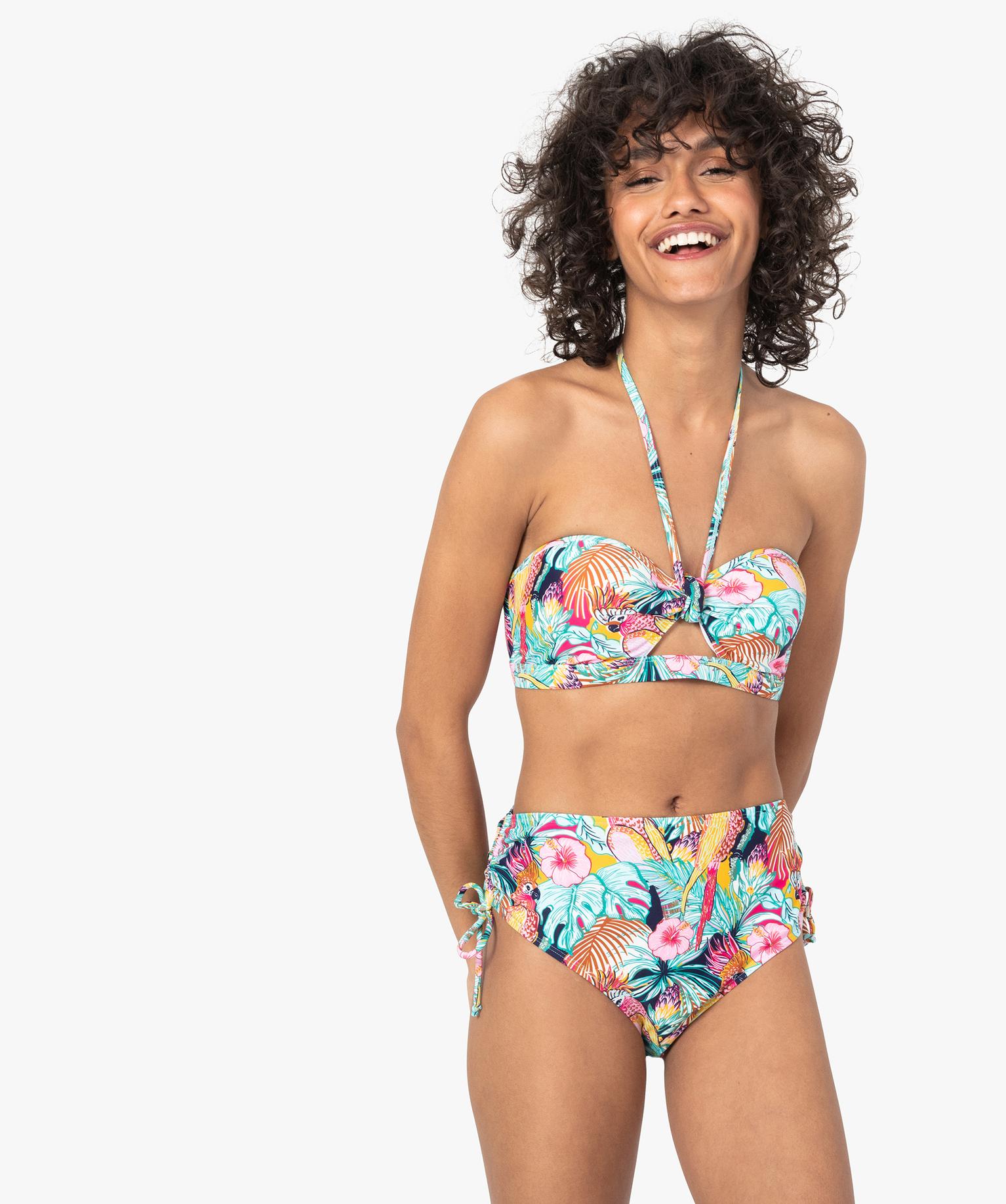 Bas de maillot de bain femme forme culotte taille haute multicouleur