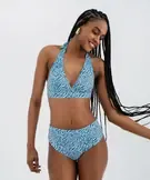 Bas de maillot de bain taille haute en maille gaufrée femme bleu