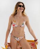 Bas de maillot de bain tanga à motifs exotiques femme beige