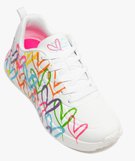 Craquez pour cette basket pour femme ultra colorée. Parsemée de coeurs multicolores façon graffitis imaginés par l’artiste James Goldcrown pour Skechers. La Skechers X JGoldcrown ajoute une touche créative et colorée à toutes les tenues du quotidien, un véritable hymne à l’amour et à la féminité. Avec sa tige en durabuck synthétique, une semelle intérieure en mousse à mémoire de forme Skechers Air-Cooled Memory Foam® respirante et une semelle intermédiaire ultra légère, cette sneaker Skechers offre un confort unique.