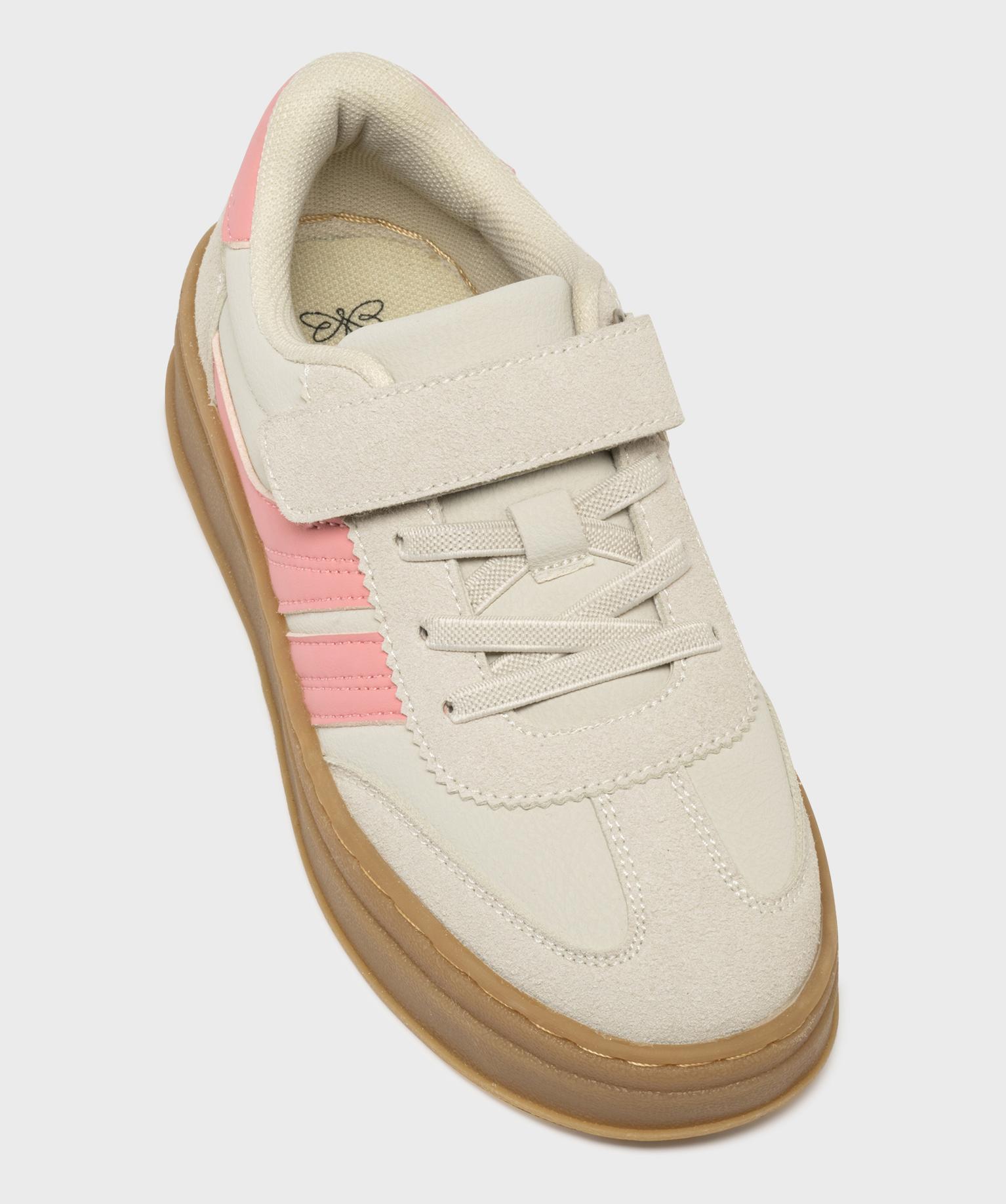 Baskets à scratch bicolores avec épaisse semelle fille - Lovely Wings beige