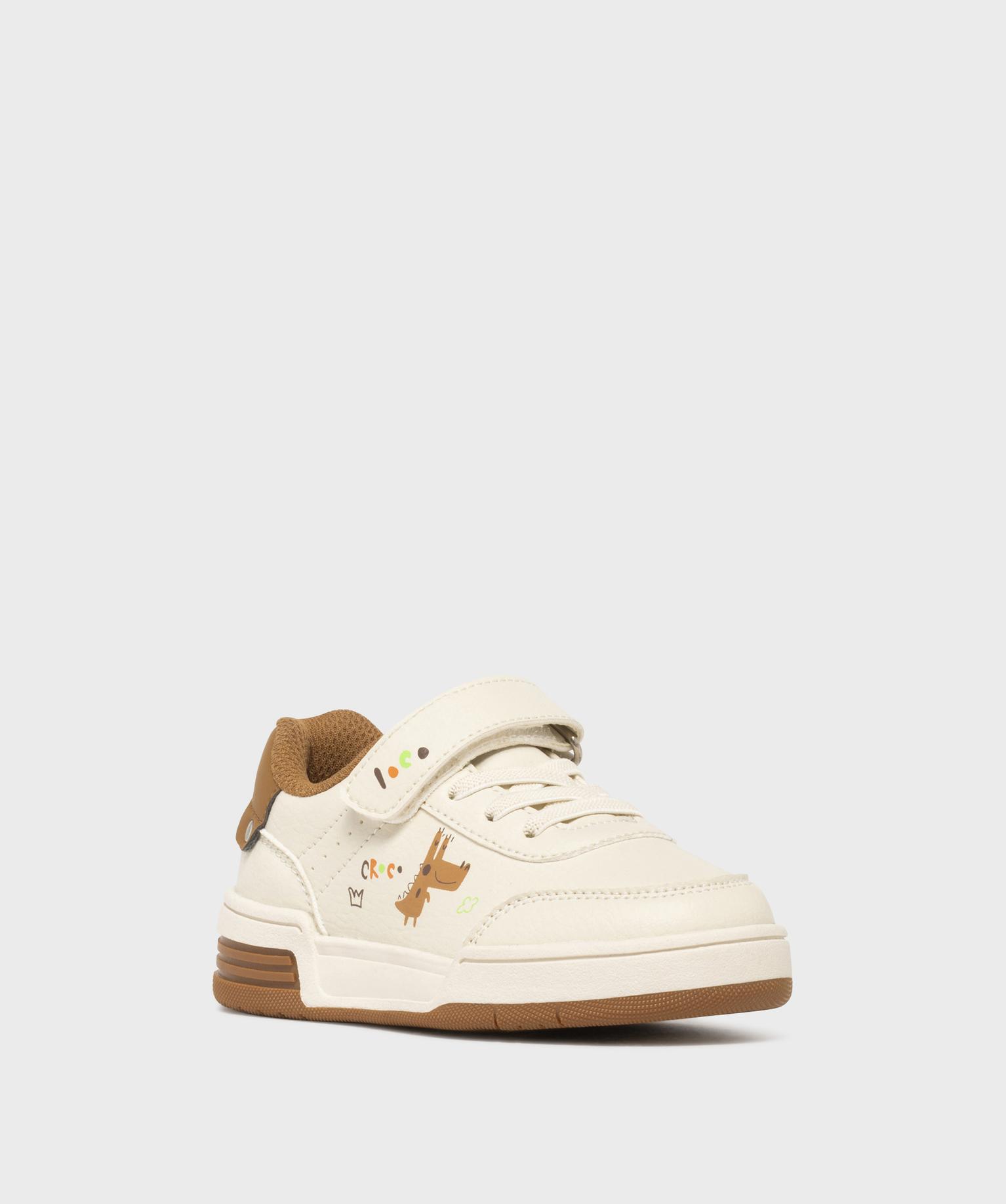 Baskets à scratch look urbain motif dinosaure garçon - 5 Miles beige