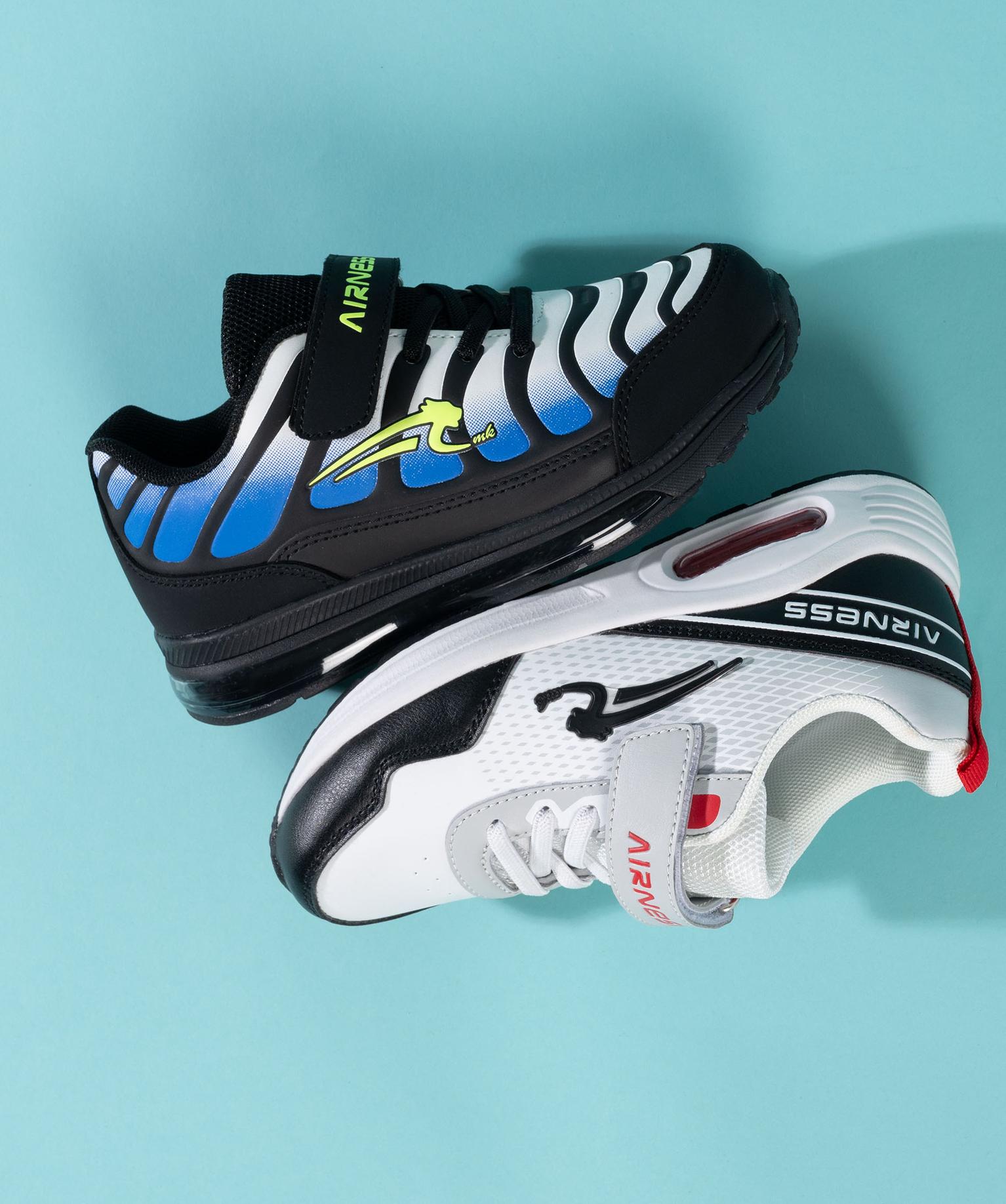 Dynamisez les looks des enfants avec ces baskets Airness multicolores. Un modèle dont la tige est parcourue de rayures et rehaussée d’un logo fluo sur le coté et de la signature de la marque sur la bride de fermeture. Ces baskets garçon sont dotées d’une semelle à bulle d’air qui leur confère une allure résolument sportive. Des baskets à scratch faciles à enfiler que les enfants porteront aussi bien avec un pantalon de jogging qu’avec un jean.