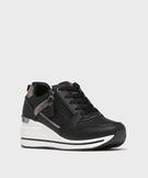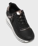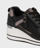 Laissez-vous séduire par ces remarquables baskets pour femme ! Avec leurs détails brillants et leur sublime talon compensé de 6 cm, ces sneakers vont vous en mettre plein la vue ! Les baskets basses à lacets sont particulièrement confortables grâce à leur semelle intérieure moelleuse et amovible, leur doublure mesh, leur col et leur languette rembourré. Pratiques, elles sont aussi équipées d'un zip latéral pour un enfilage facile. Des sneakers idéales pour rester à son aise tout en élançant sa silhouette !