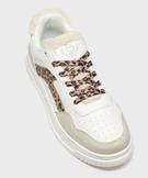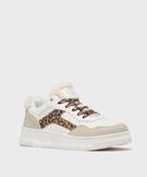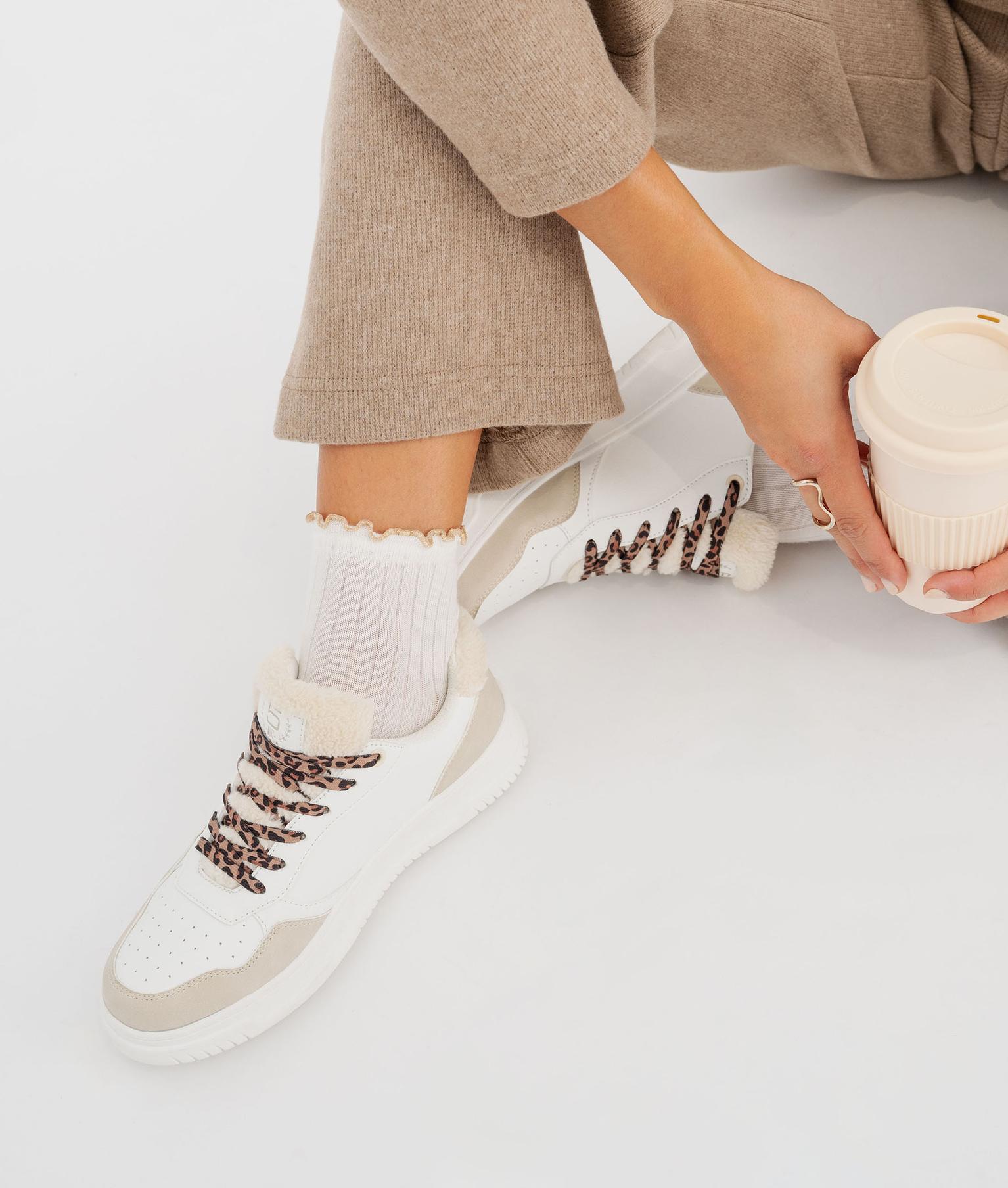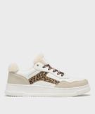 Baskets avec empiècements léopard et fausse fourrure femme - 5 Miles blanc