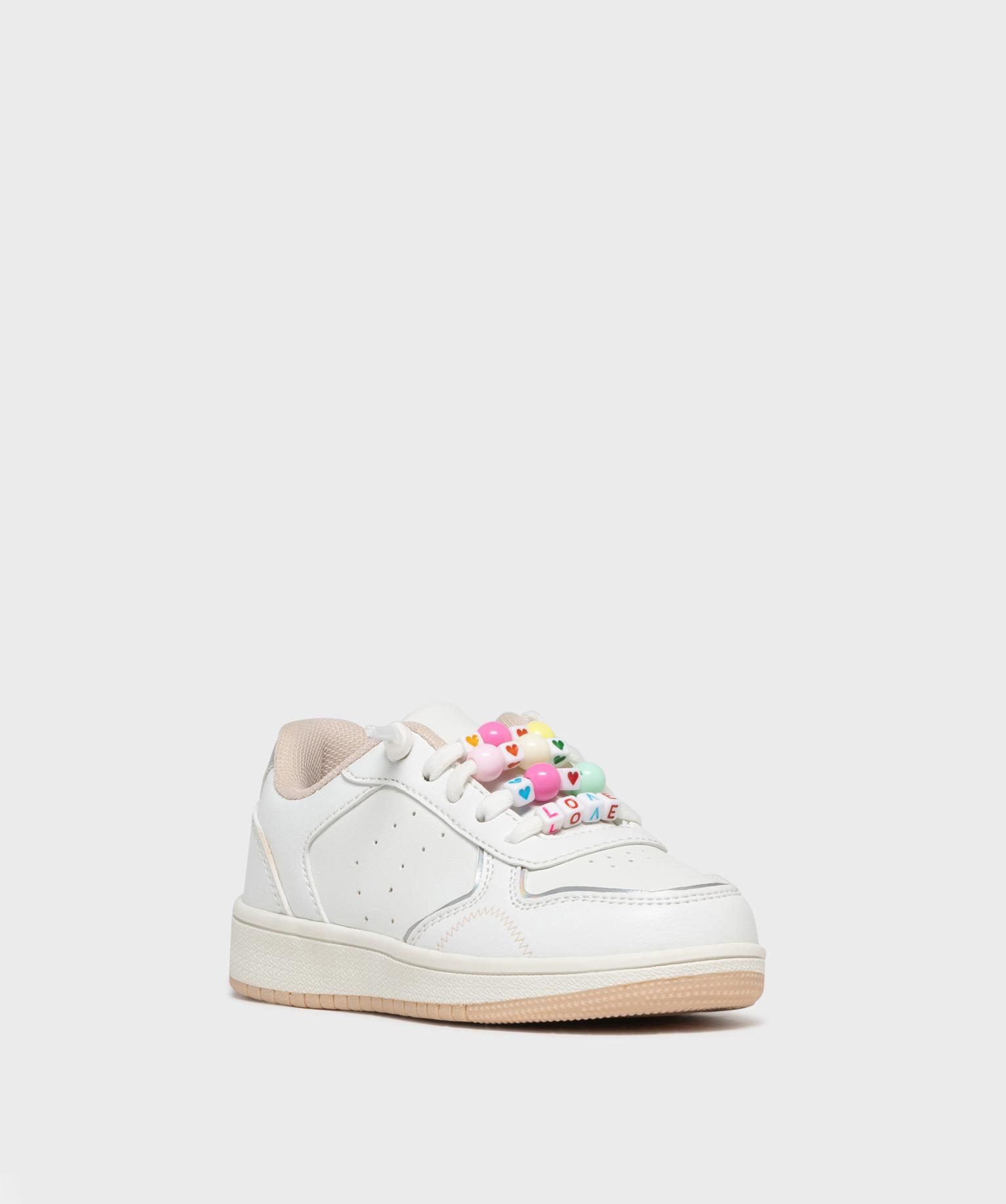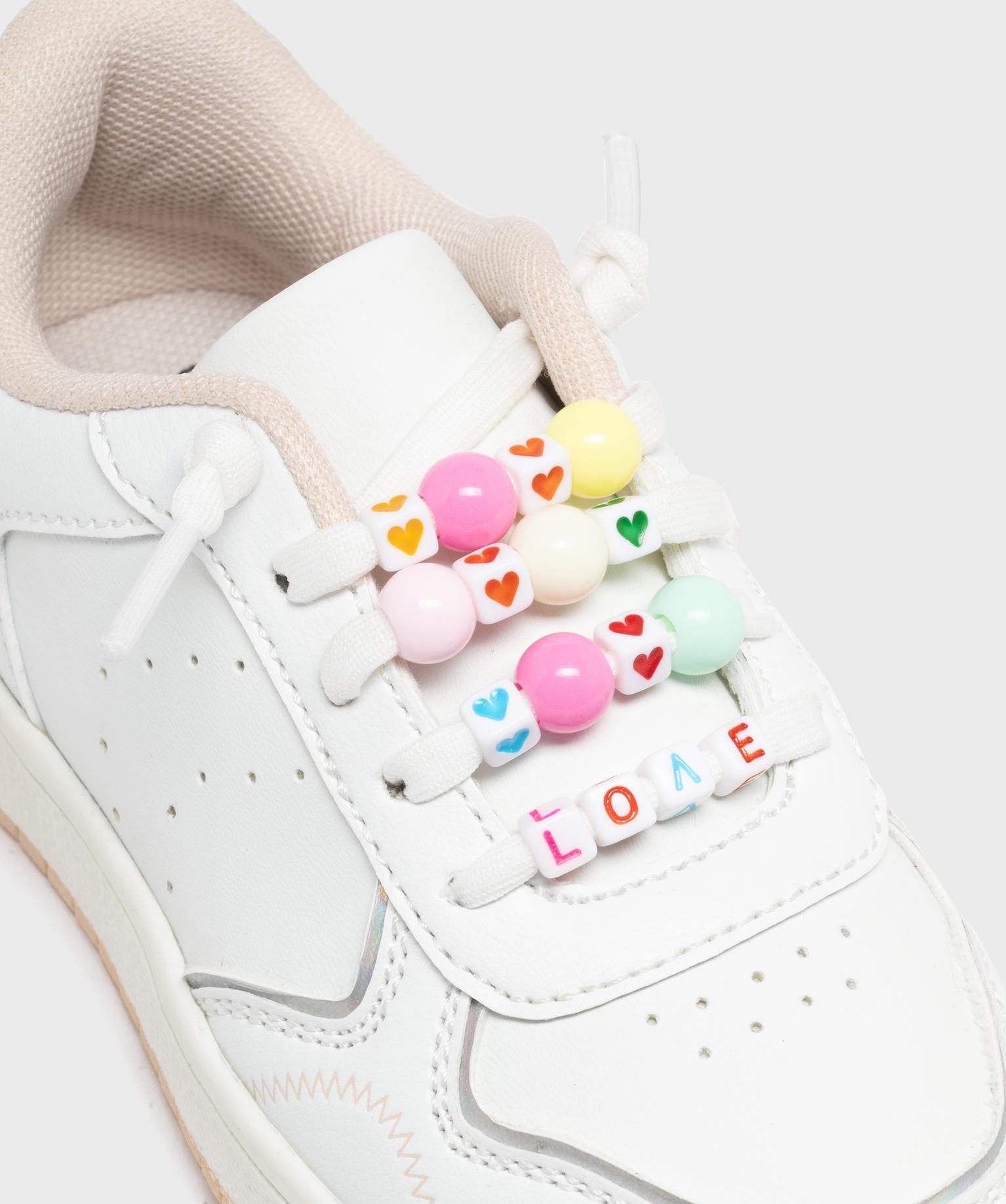 Les chaussures sportswear se parent de détails girly cette saison. Ces baskets fille sont à la fois originales et uniques avec leurs lacets élastiques ornés de perles multicolores et décorées de lettres formant le mot « Love », des détails charmants qui font toute la différence ! De subtils liserés métallisés viennent rehausser la tige pour une touche de style supplémentaire. Faciles à enfiler, ces baskets Lovely Wings offrent un confort optimal grâce à leur col et leur languette rembourrés, et leur semelle intérieure moussée. Elles se portent aussi bien avec un jean, une tenue de sport, ou une robe en jean.