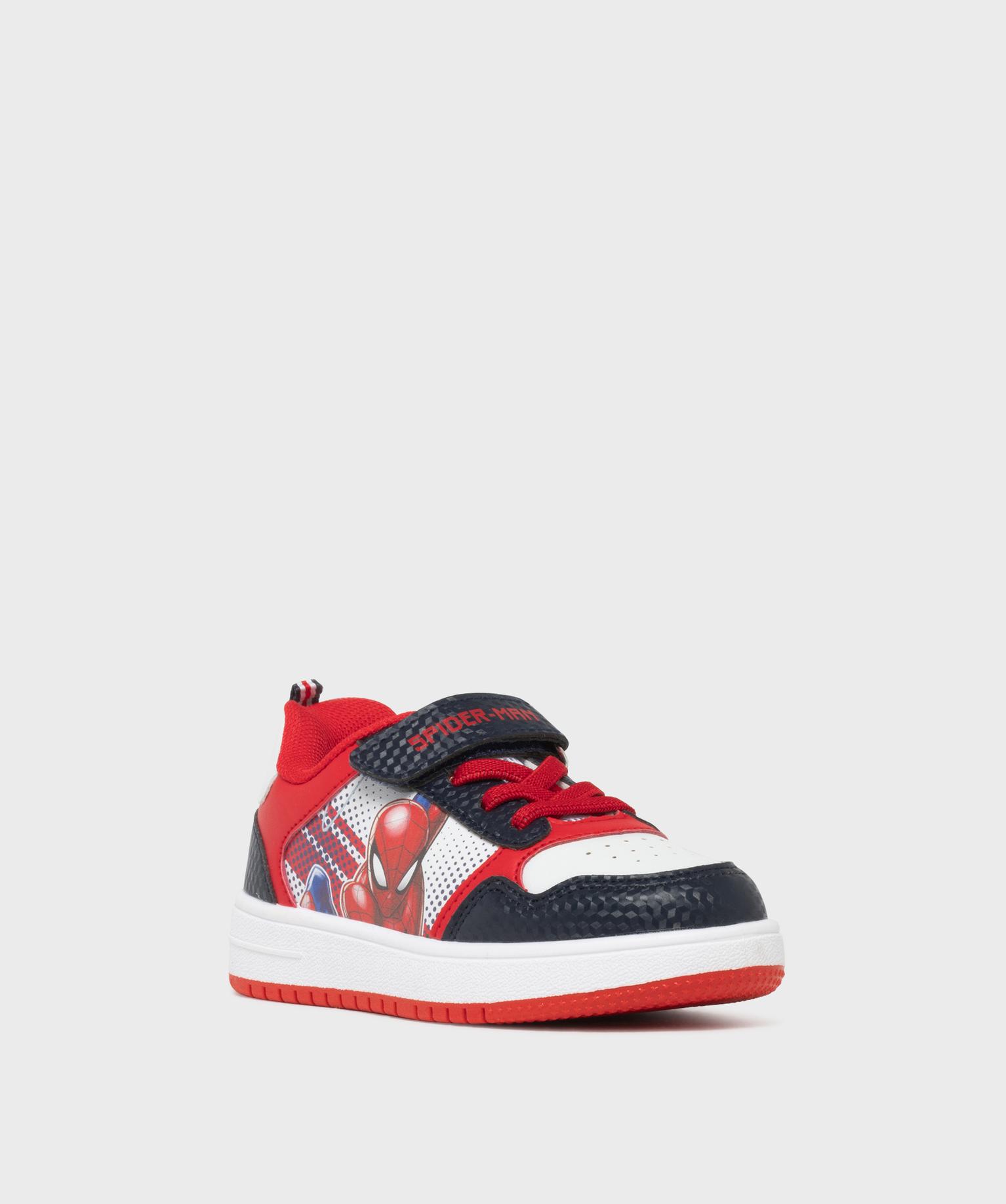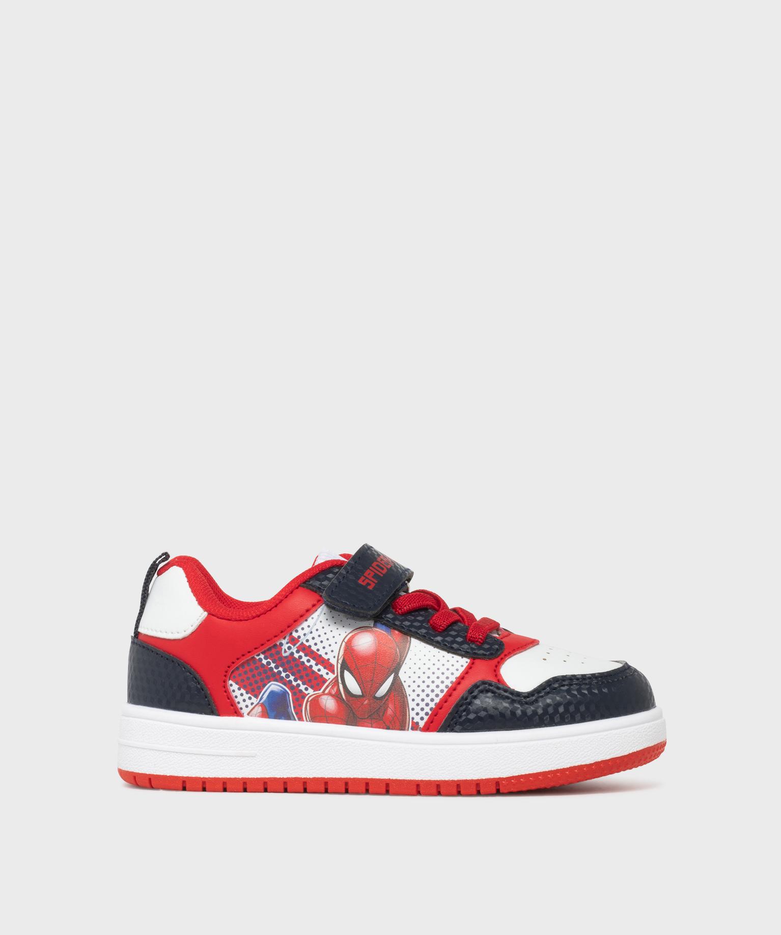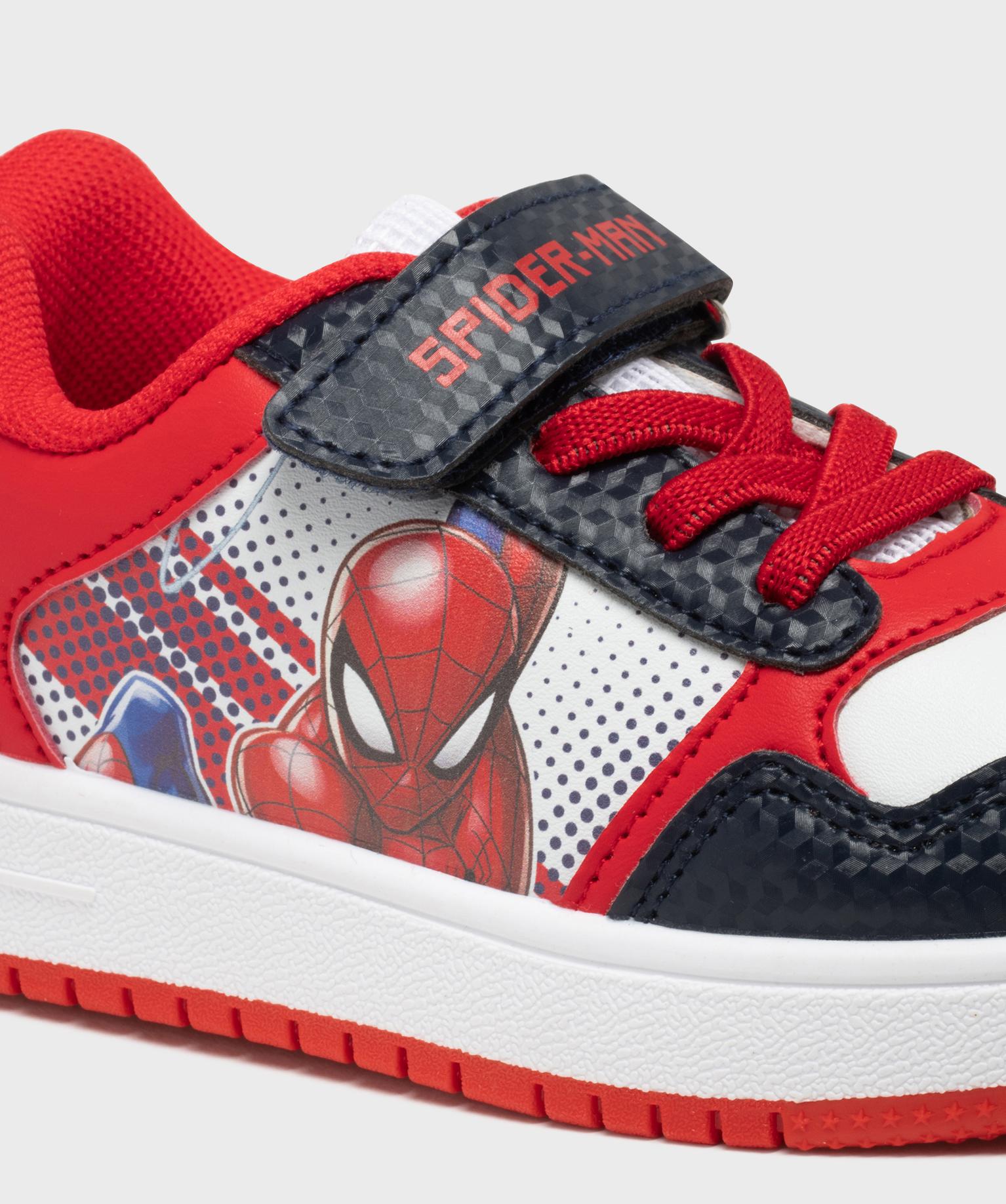 Baskets basses à lacets élastiques et scratch garçon - Spiderman blanc