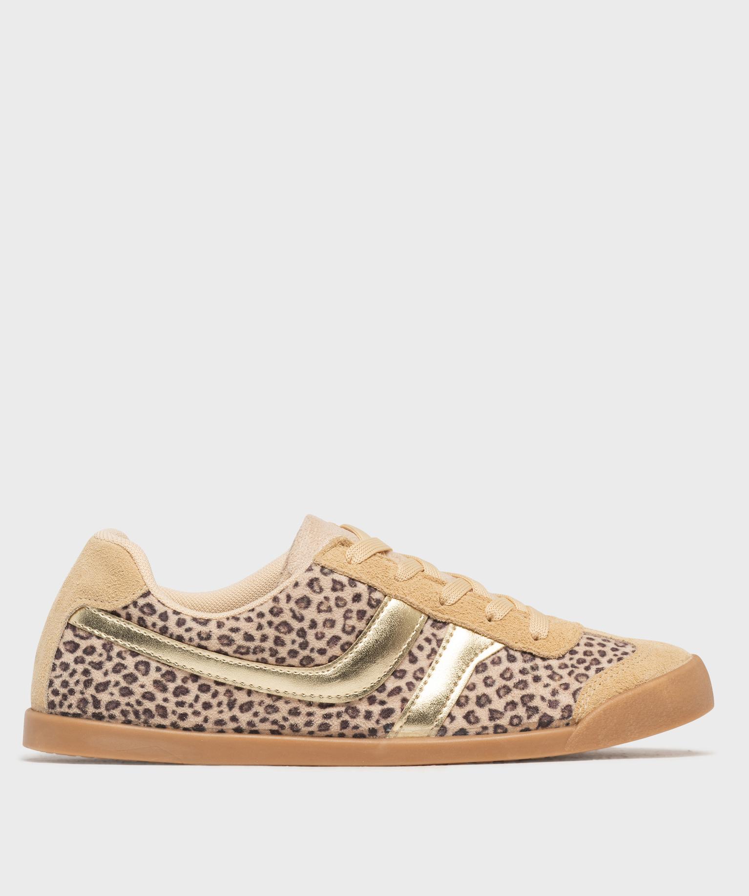 Baskets basses à lacets imprimé léopard femme - Camps United beige chine