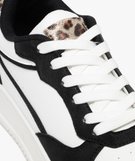 Osez le léopard avec ces baskets basses pour femme qui allient confort et style. Leur design multicolore, orné de détails imprimés léopard pailleté, apporte une touche tendance et girly à toutes vos tenues. Grâce à leur épaisse semelle, vous bénéficiez d'un max de style et d’un bon amorti à chaque pas. La doublure en mesh assure une respirabilité optimale, tandis que le col et la languette rembourrés offrent un confort supplémentaire. Ces baskets sont idéales pour "cooliser" une robe tout en conservant un charme très féminin. Petites perforations sur l'avant. Fermeture par lacets plats, 6 paires d'œillets.