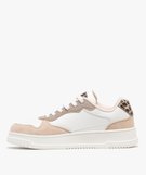 Osez le léopard avec ces baskets basses pour femme qui allient confort et style. Leur design multicolore, orné de détails imprimés léopard pailleté, apporte une touche tendance et girly à toutes vos tenues. Grâce à leur épaisse semelle, vous bénéficiez d'un max de style et d’un bon amorti à chaque pas. La doublure en mesh assure une respirabilité optimale, tandis que le col et la languette rembourrés offrent un confort supplémentaire. Ces baskets sont idéales pour "cooliser" une robe tout en conservant un charme très féminin. Petites perforations sur l'avant. Fermeture par lacets plats, 6 paires d'œillets.