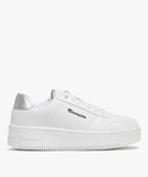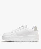 La marque Champion signe ici des baskets pour femme très tendance et féminines. En effet, elles affichent une épaisse semelle plateforme de 4 cm finement crantée, des lacets pailletées, des touches d'argent à la languette et sur le talon. Le dessus adopte une finition subtilement texturée et un design rétro. Fermeture lacets plats ton sur ton 6 œillets. Champion marqué en relief sur la languette, le talon, le côté et la semelle extérieure. Col rembourré très confortable.
