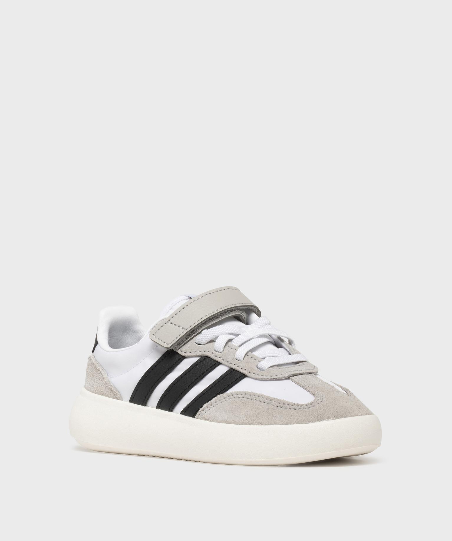 Alliant look rétro, confection moderne et confort, les baskets Adidas Barreda Decode EL séduisent par leur design sportif néo vintage et leur simplicité d'enfilage. Les lacets élastiques associés à une bride scratch permettent aux enfants d’enfiler leurs chaussures en toute autonomie. Les baskets garçon disposent d’une épaisse semelle qui accompagne tous les mouvements et offrent un bel amorti. Le dessus en toile et cuir suédé les rend parfaites pour l’école comme pour les moments de loisirs !